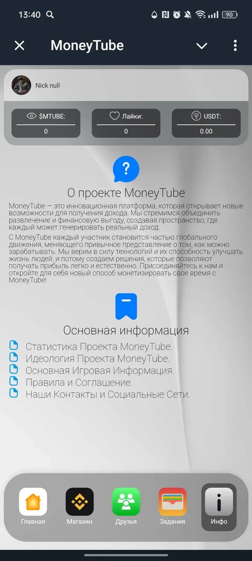 MoneyTube β ΡΠΊΠΎΠ½ΠΎΠΌΠΈΡΠ΅ΡΠΊΠ°Ρ ΠΈΠ³ΡΠ° Ρ ΡΠΈΠΌΡΠ»ΡΡΠΈΠ΅ΠΉ Π±ΠΈΠ·Π½Π΅ΡΠ° ΠΈ Π½Π°ΠΊΠΎΠΏΠ»Π΅Π½ΠΈΠ΅ΠΌ Π²ΠΈΡΡΡΠ°Π»ΡΠ½ΠΎΠ³ΠΎ ΠΊΠ°ΠΏΠΈΡΠ°Π»Π°. ΠΡΠΎΠ΅ΠΊΡ Π΄Π΅Π»Π°Π΅Ρ ΡΠΏΠΎΡ Π½Π° ΡΠΎΡΠΈΠ°Π»ΡΠ½ΠΎΠ΅ Π²Π·Π°ΠΈΠΌΠΎΠ΄Π΅ΠΉΡΡΠ²ΠΈΠ΅ ΠΈ ΡΠ΅Π³ΡΠ»ΡΡΠ½ΡΠ΅ ΠΈΠ³ΡΠΎΠ²ΡΠ΅ ΡΠΎΠ±ΡΡΠΈΡ.