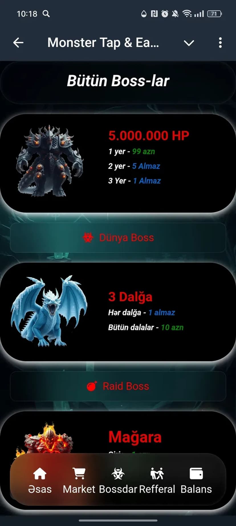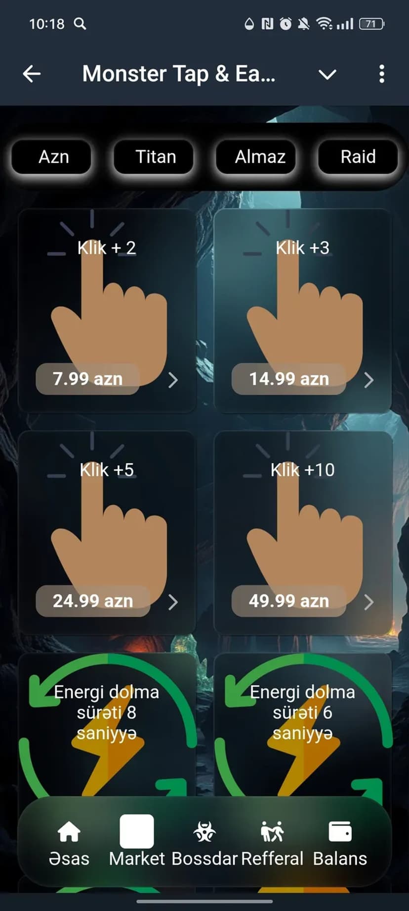 Кликер: наносите удары боссам, собирайте алмазы и титан для вывода в AZN