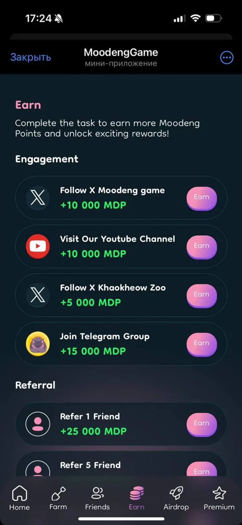 *Нажимая "Открыть в Telegram", вы перейдете к приложению MoodengGame в мессенджере Telegram