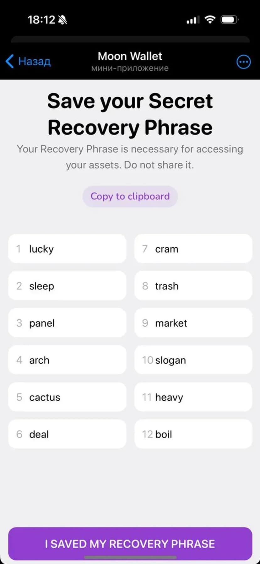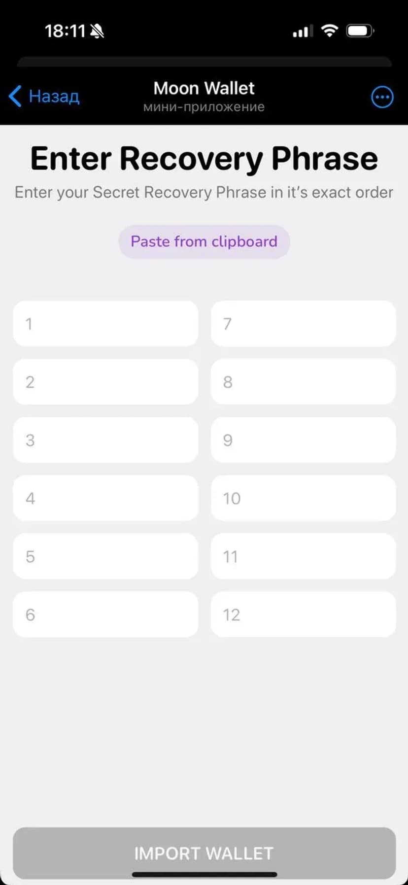 *Нажимая "Открыть в Telegram", вы перейдете к приложению Moon Wallet в мессенджере Telegram