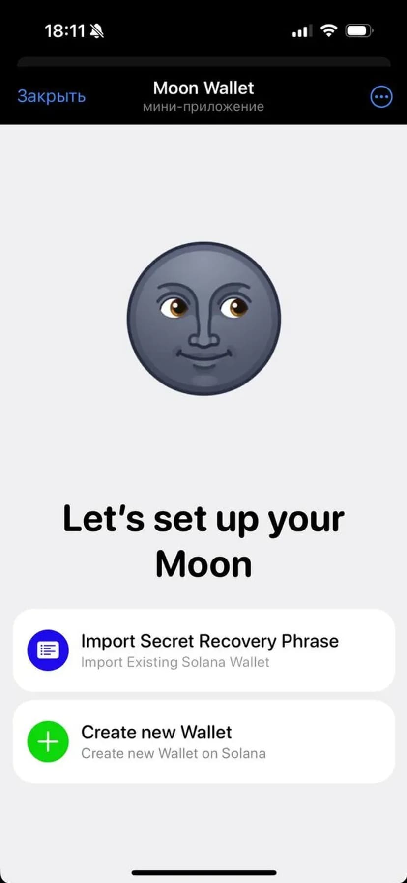 Moon Wallet — кошелёк для работы с мем-коинами в сети Solana, доступный через официальный Telegram-бот. Позволяет хранить, управлять и обменивать токены Solana без установки отдельного приложения.