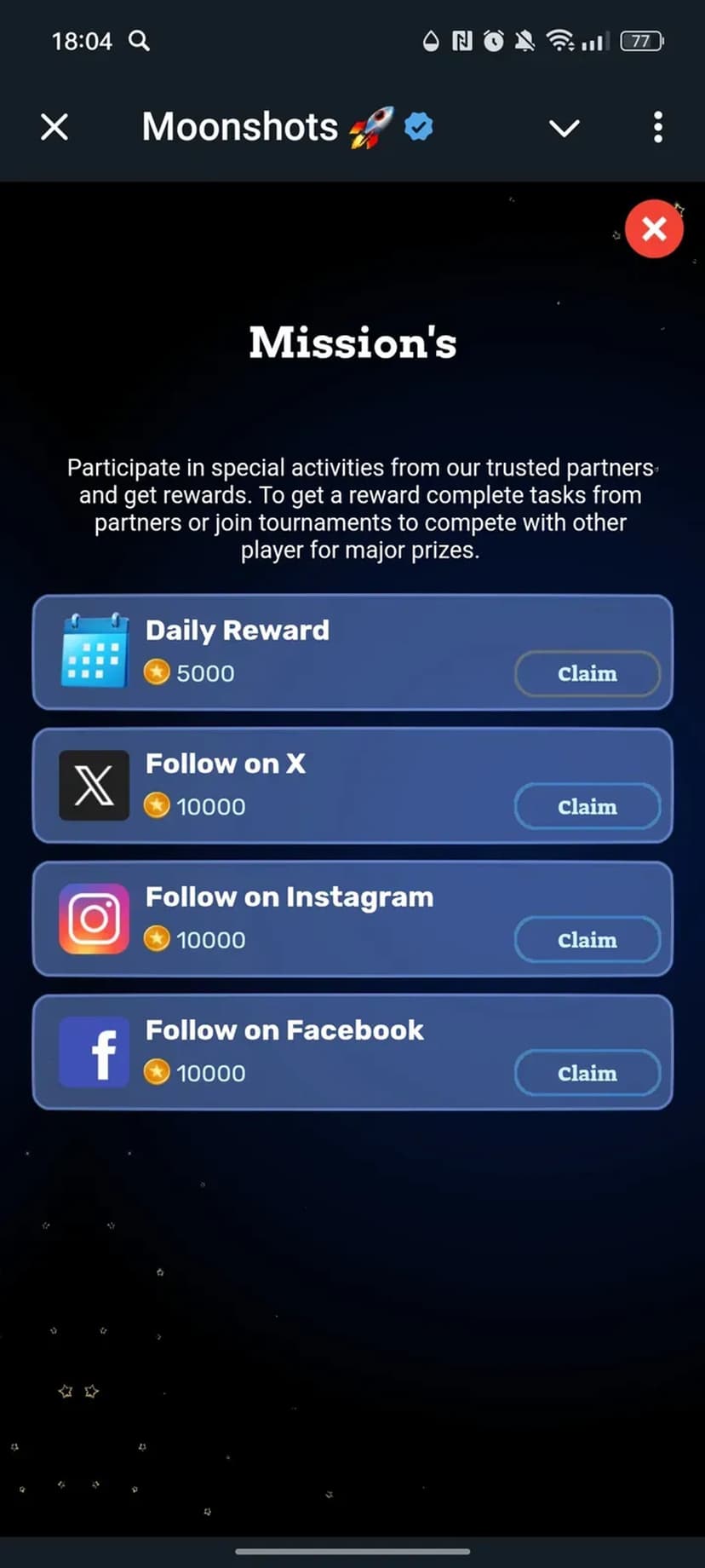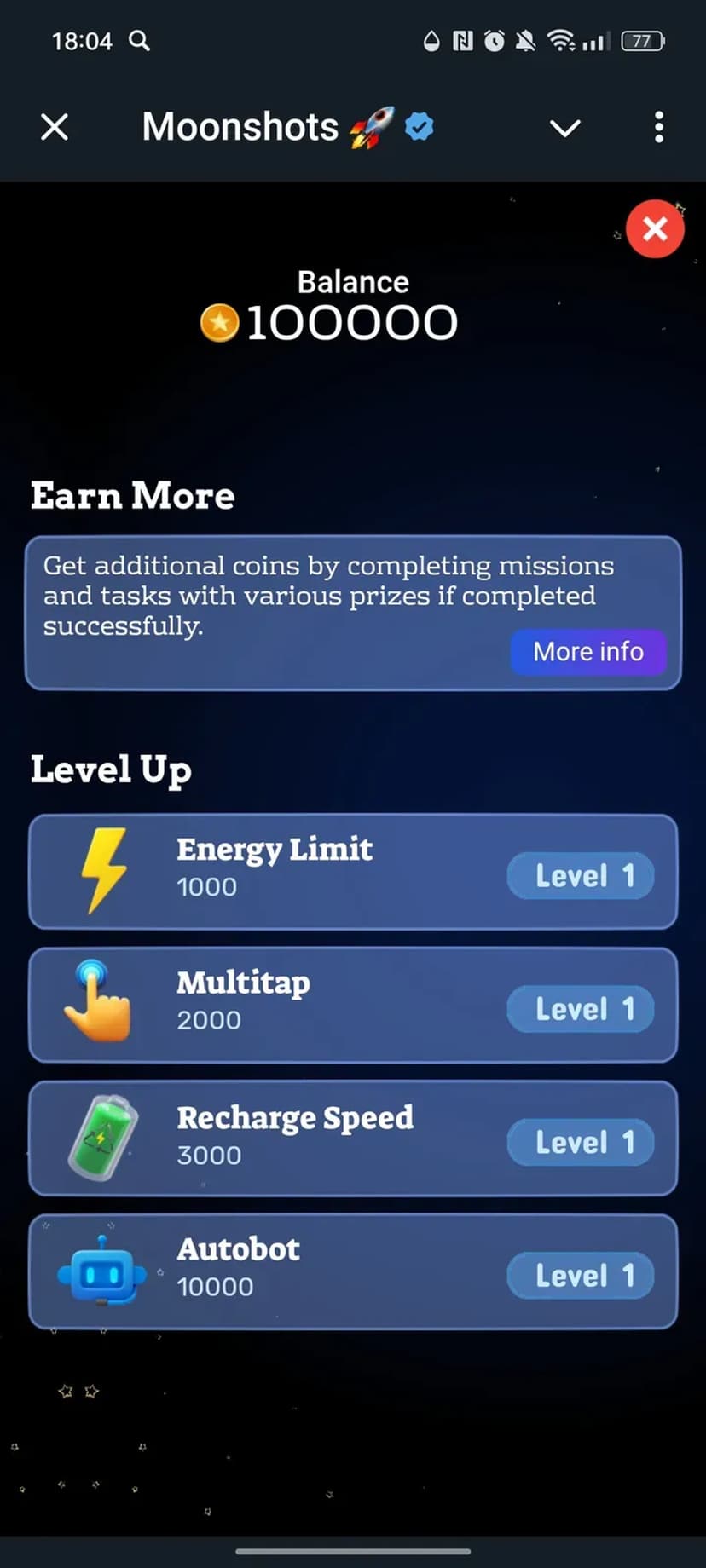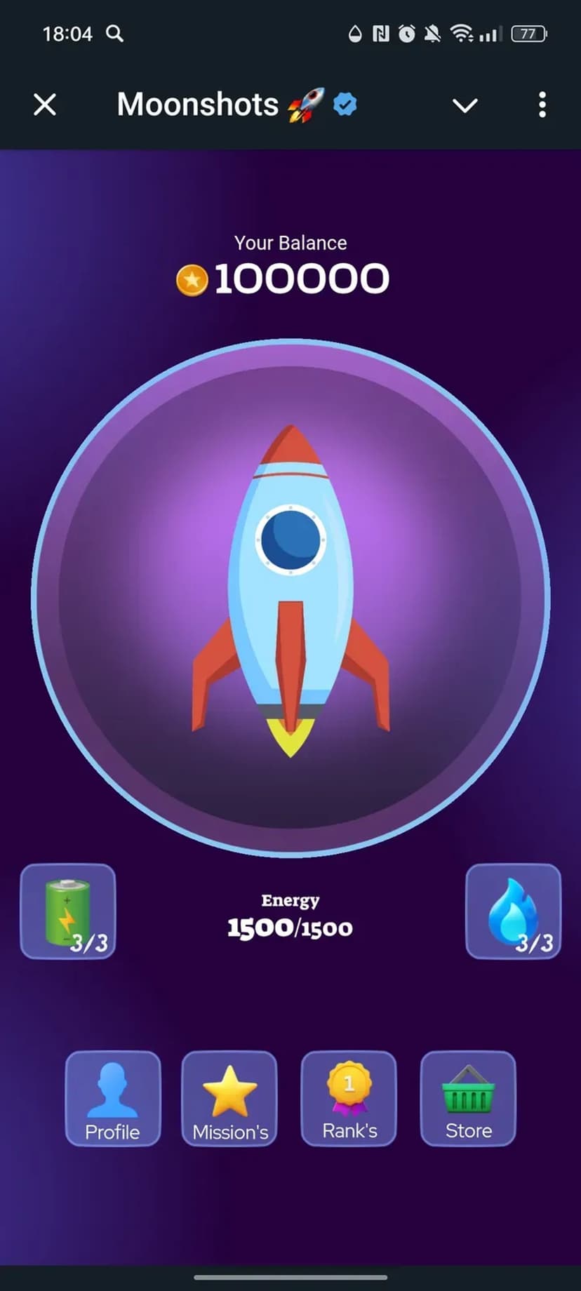 Moonshots π β ΠΊΠΎΡΠΌΠΈΡΠ΅ΡΠΊΠ°Ρ ΠΈΠ³ΡΠ° Π² ΠΆΠ°Π½ΡΠ΅ ΠΊΠ»ΠΈΠΊΠ΅Ρ Π²Π½ΡΡΡΠΈ Telegram. Π£ΠΏΡΠ°Π²Π»ΡΠΉΡΠ΅ ΡΠ°ΠΊΠ΅ΡΠΎΠΉ: Π½Π°ΠΆΠΈΠΌΠ°ΠΉΡΠ΅ Π΄Π»Ρ ΠΏΠΎΠ»ΡΡΠ΅Π½ΠΈΡ ΠΎΡΠΊΠΎΠ² ΠΈ ΠΈΠ½Π²Π΅ΡΡΠΈΡΡΠΉΡΠ΅ ΠΈΡ Π² ΡΠ»ΡΡΡΠ΅Π½ΠΈΡ, ΡΡΠΎΠ±Ρ ΠΏΠΎΡΡΠΎΡΠ½Π½ΠΎ ΡΠ²Π΅Π»ΠΈΡΠΈΠ²Π°ΡΡ Π΄ΠΎΡ ΠΎΠ΄.