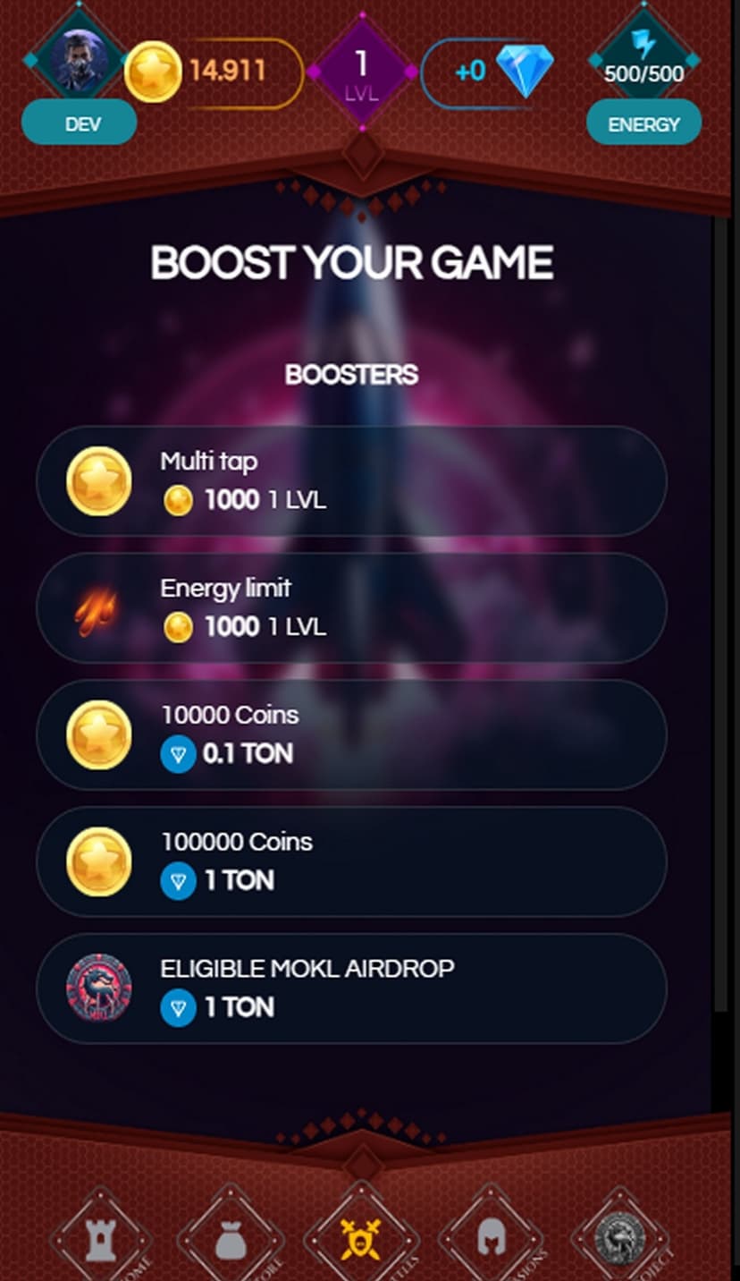 Mortal Klicker — динамичный кликер на блокчейне TON, где за клики и участие в боях начисляются внутриигровые токены.