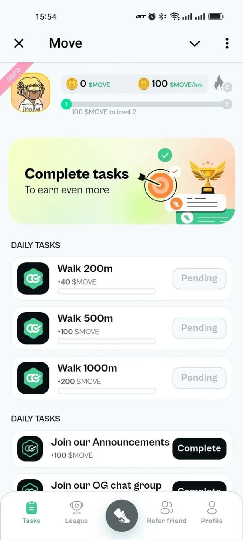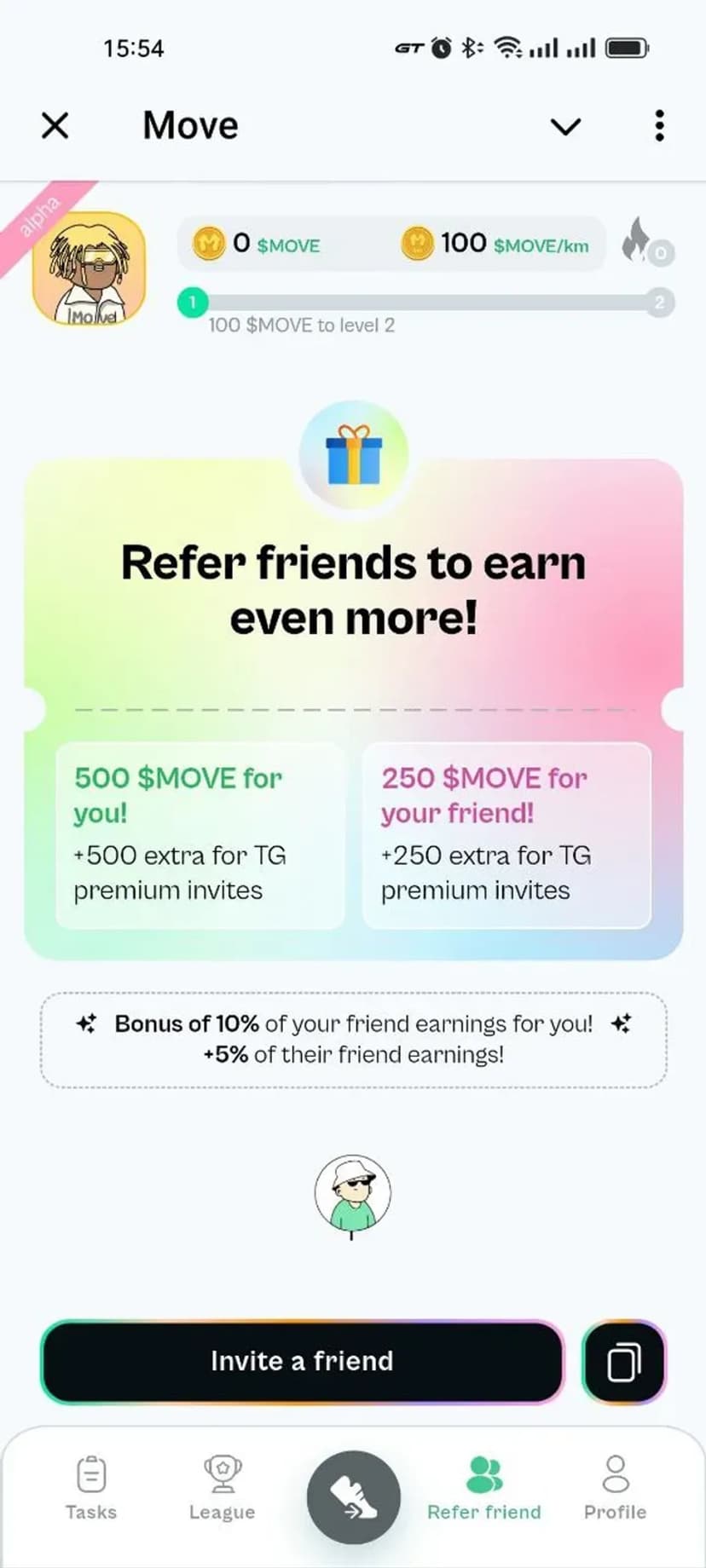 Move — мини‑приложение внутри Telegram, фиксирующее перемещения пользователя и начисляющее цифровые токены за пройденную дистанцию. Сервис использует датчики устройства и GPS, а накопленные токены отражаются на внутреннем балансе.