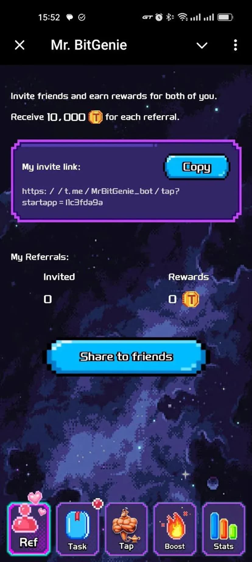 MR.Bitgenie — интерактивная игра-симулятор с геймификацией и внутриигровой валютой. Пользователи выполняют задания, накапливают монеты, продвигаются по уровням и принимают участие в розыгрышах за награды.