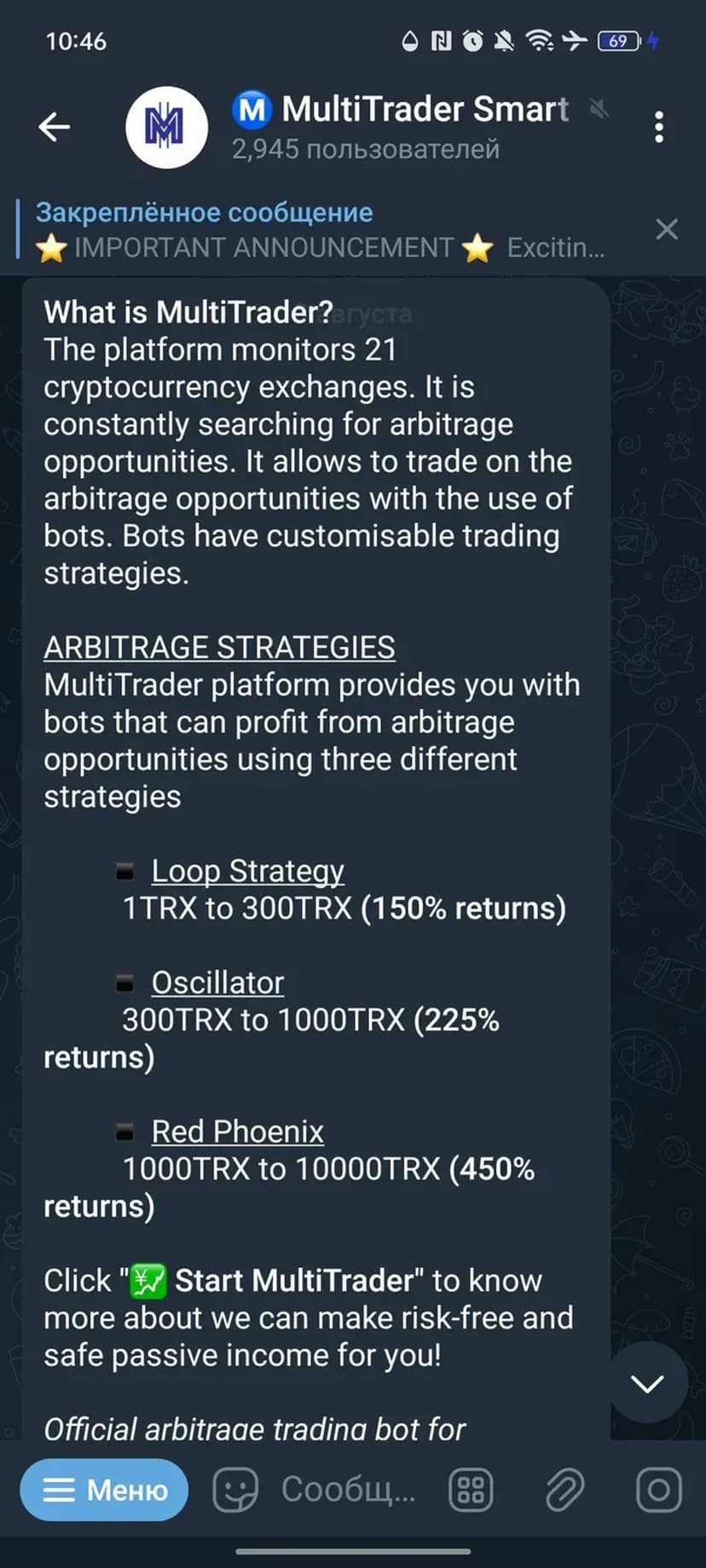 *Нажимая "Открыть в Telegram", вы перейдете к приложению Ⓜ️ MultiTrader Smart Arbitrage Trading Platform в мессенджере Telegram