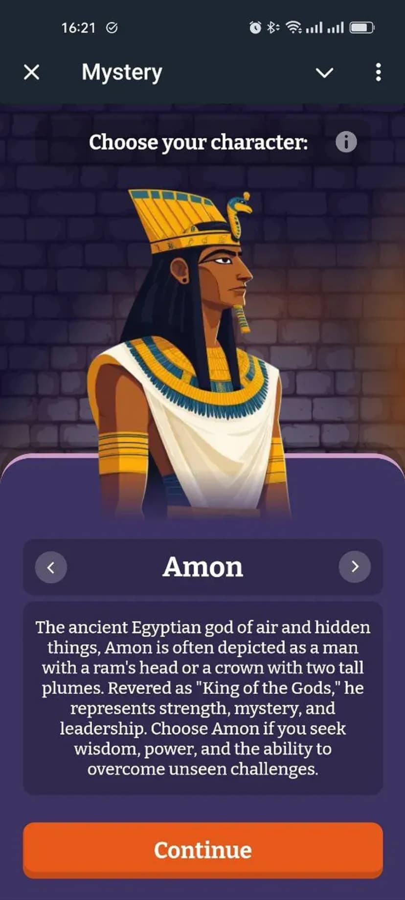 Mystery — интерактивные сюжетные квесты с механикой «choose your own adventure»: каждое решение влияет на развитие истории и открывает новые возможности.
