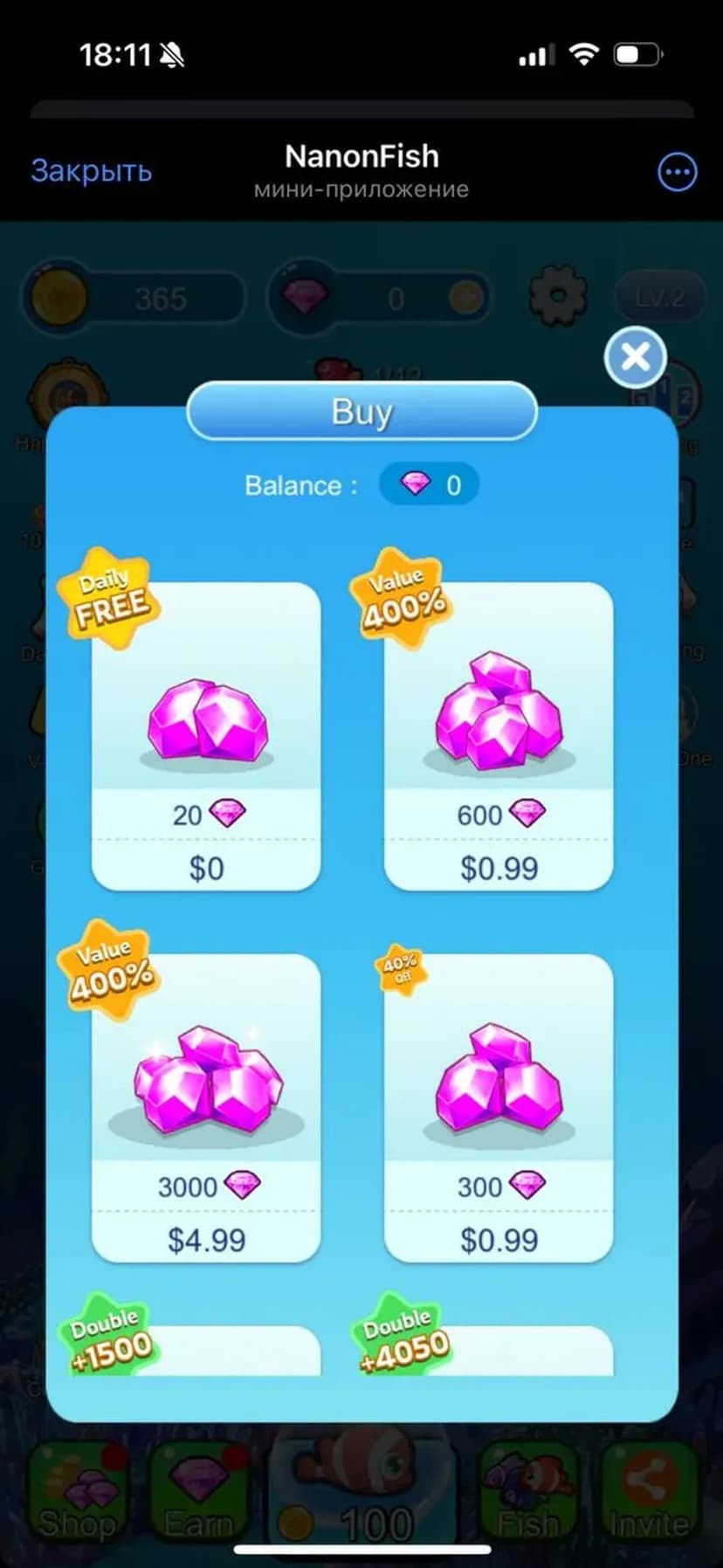 *Нажимая "Открыть в Telegram", вы перейдете к приложению NanonFish в мессенджере Telegram