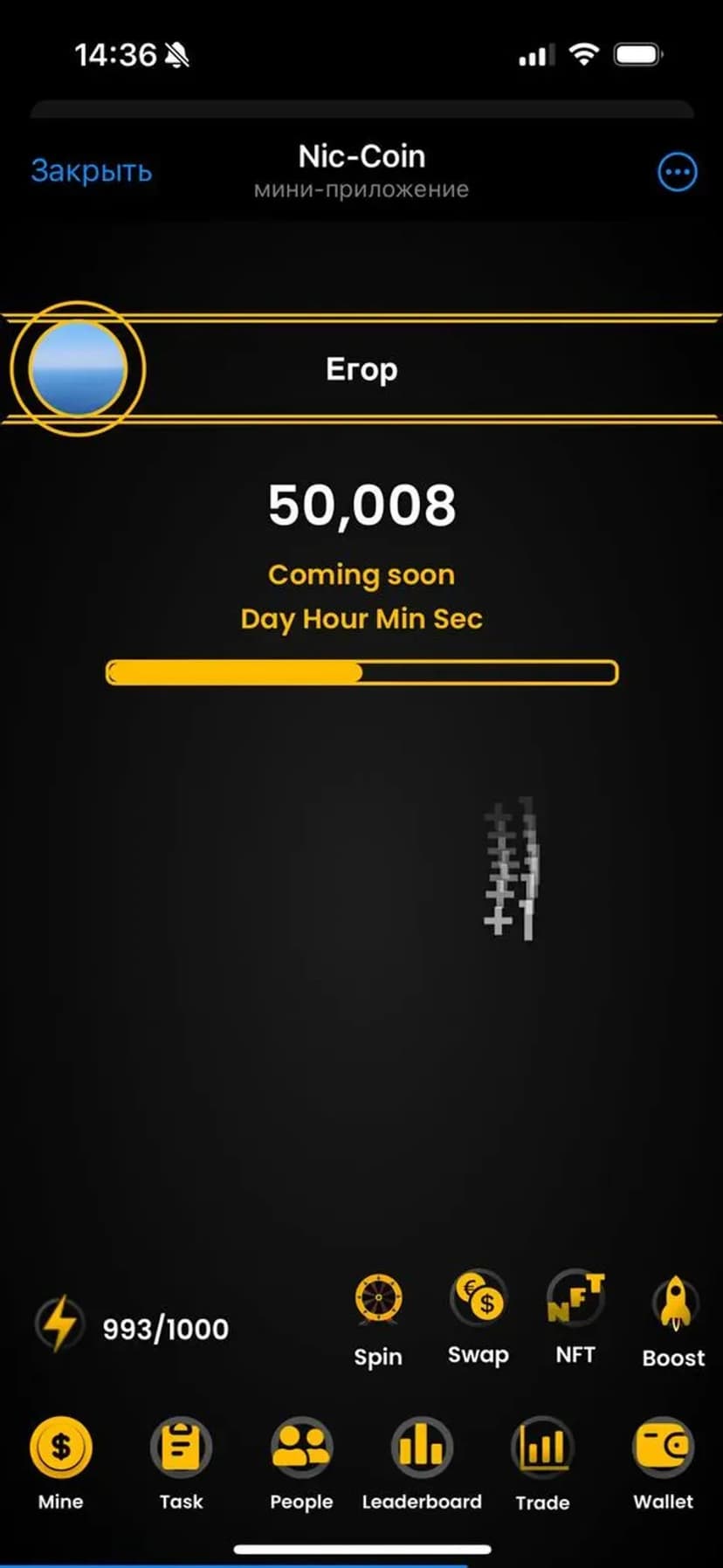 Nic-Coin — мини-приложение внутри Telegram для простого сбора собственной криптовалюты NIC. Пользователи получают токены за клики и за привлечение новых участников, а за каждого приведённого друга начисляется вознаграждение в TONCOIN.
