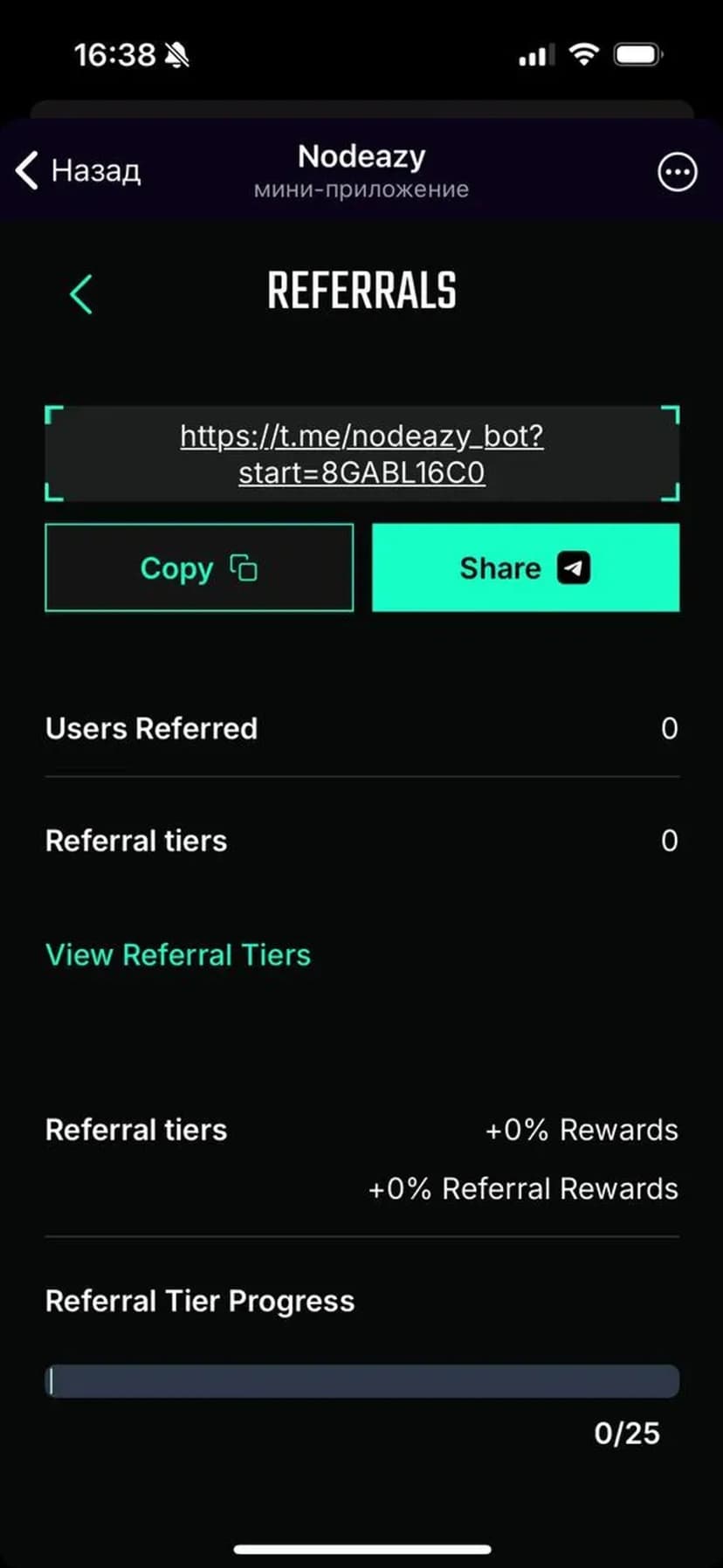 - Приглашения: приглашайте друзей, чтобы ускорять майнинг и повышать эффективность.