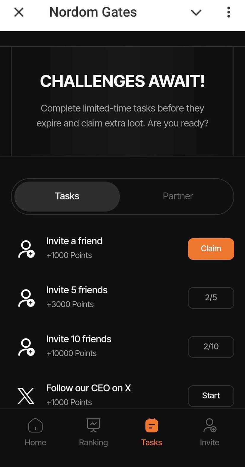 Nordom Gates — интерактивная игра с выбором одной из трёх дверей: за правильным решением скрываются баллы, которые можно либо сразу получить, либо рискнуть и перейти на следующий уровень, пытаясь увеличить выигрыш. За одну сессию можно заработать до 1 000 000 баллов.