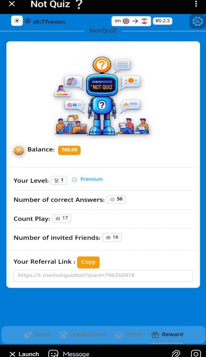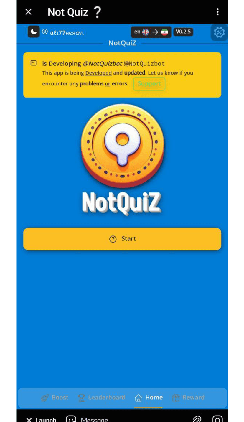 Not Quiz — интерактивная викторина с несколькими вариантами ответов, доступная через Telegram-бота. Участники проходят раунды разной сложности и получают внутренние токены NQZ за правильные ответы.