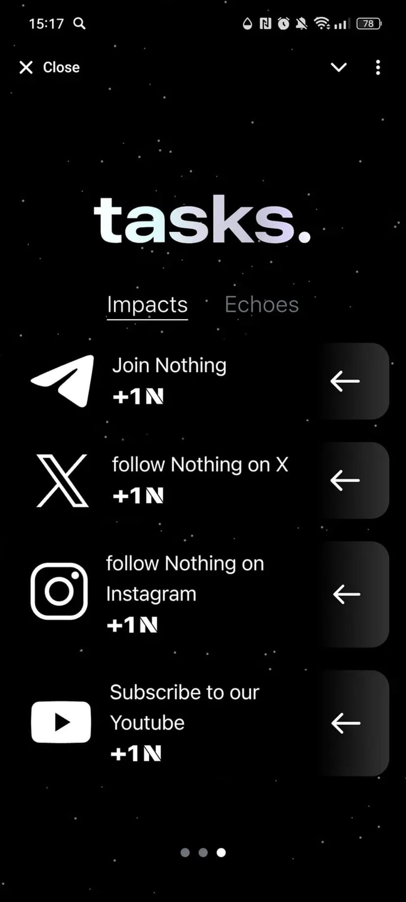 Nothing предлагает исследовать виртуальное «ничто» в течение строго отмеренного цикла — 60 дней. Все действия участников фиксируются и суммируются в общий пул вознаграждений; по завершении периода средства распределяются пропорционально вкладу пользователей, причём 100% пула направляются сообществу.