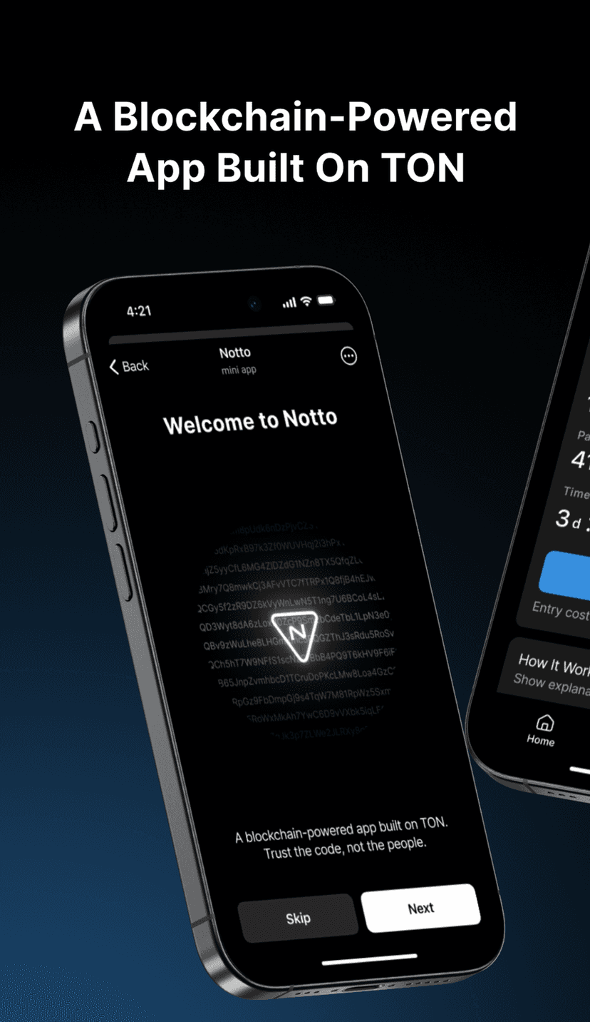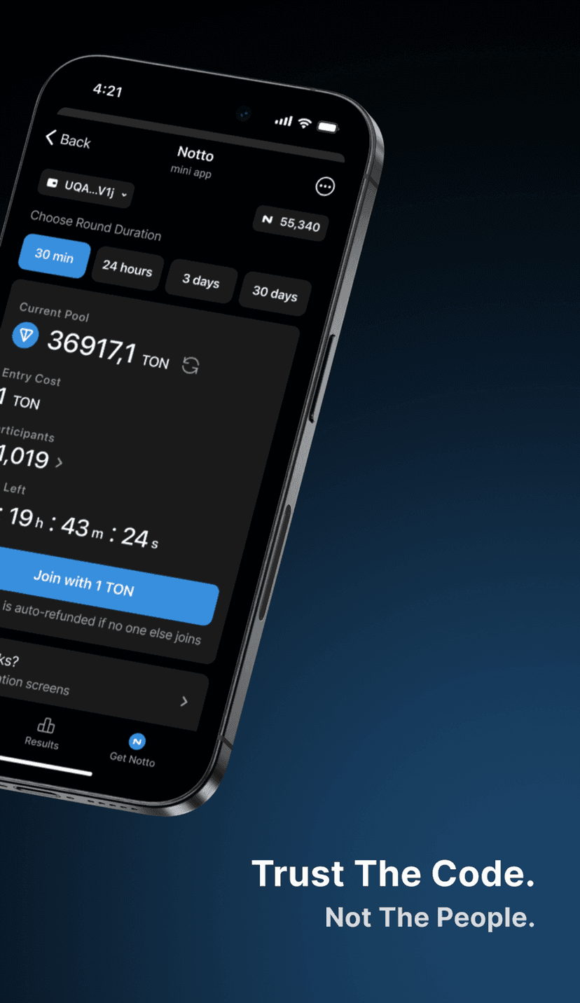 Notto — мини‑приложение для проведения лотерей на блокчейне TON. Игры проходят с фиксированным взносом, ограничены по времени и используют смарт‑контракты для автоматизации выплат и возвратов.