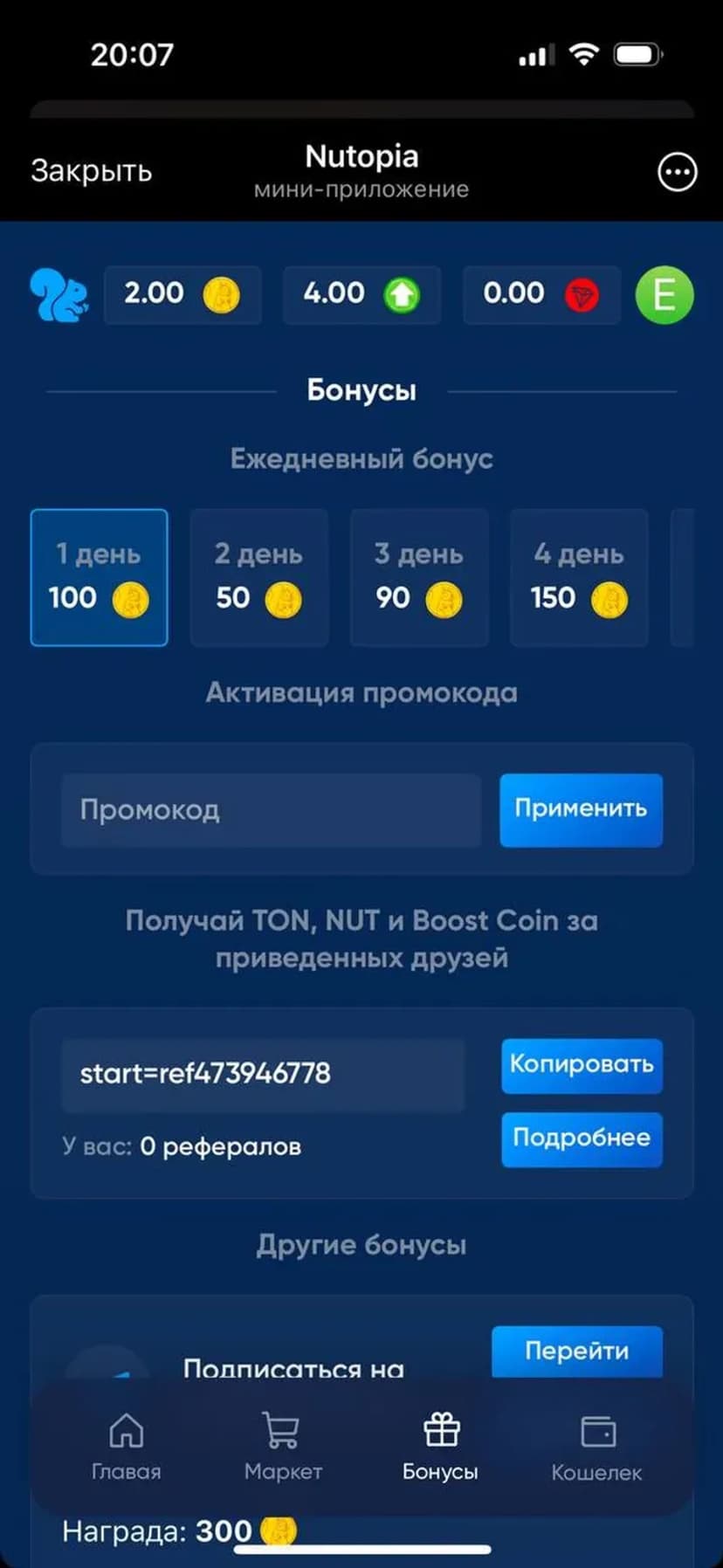 *Нажимая "Открыть в Telegram", вы перейдете к приложению Nutopia в мессенджере Telegram