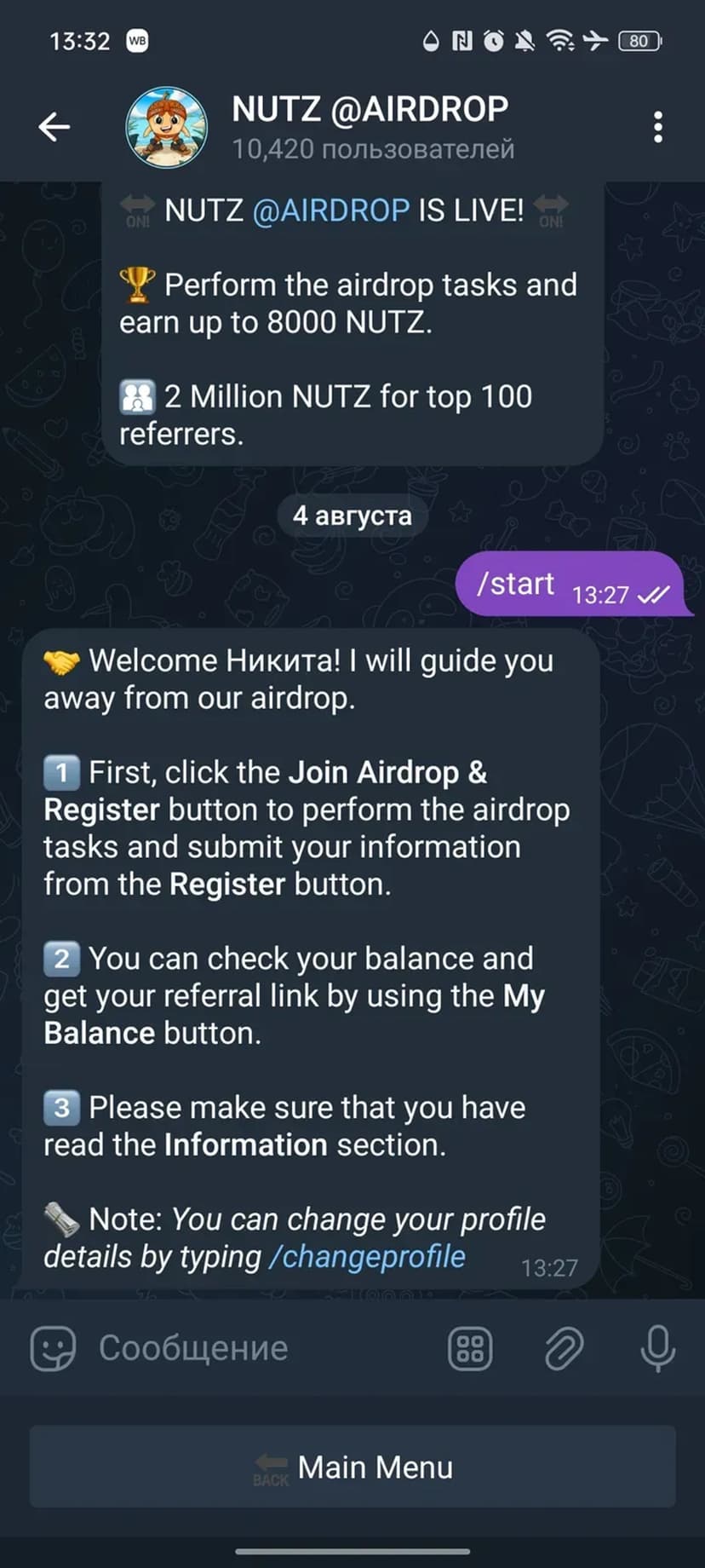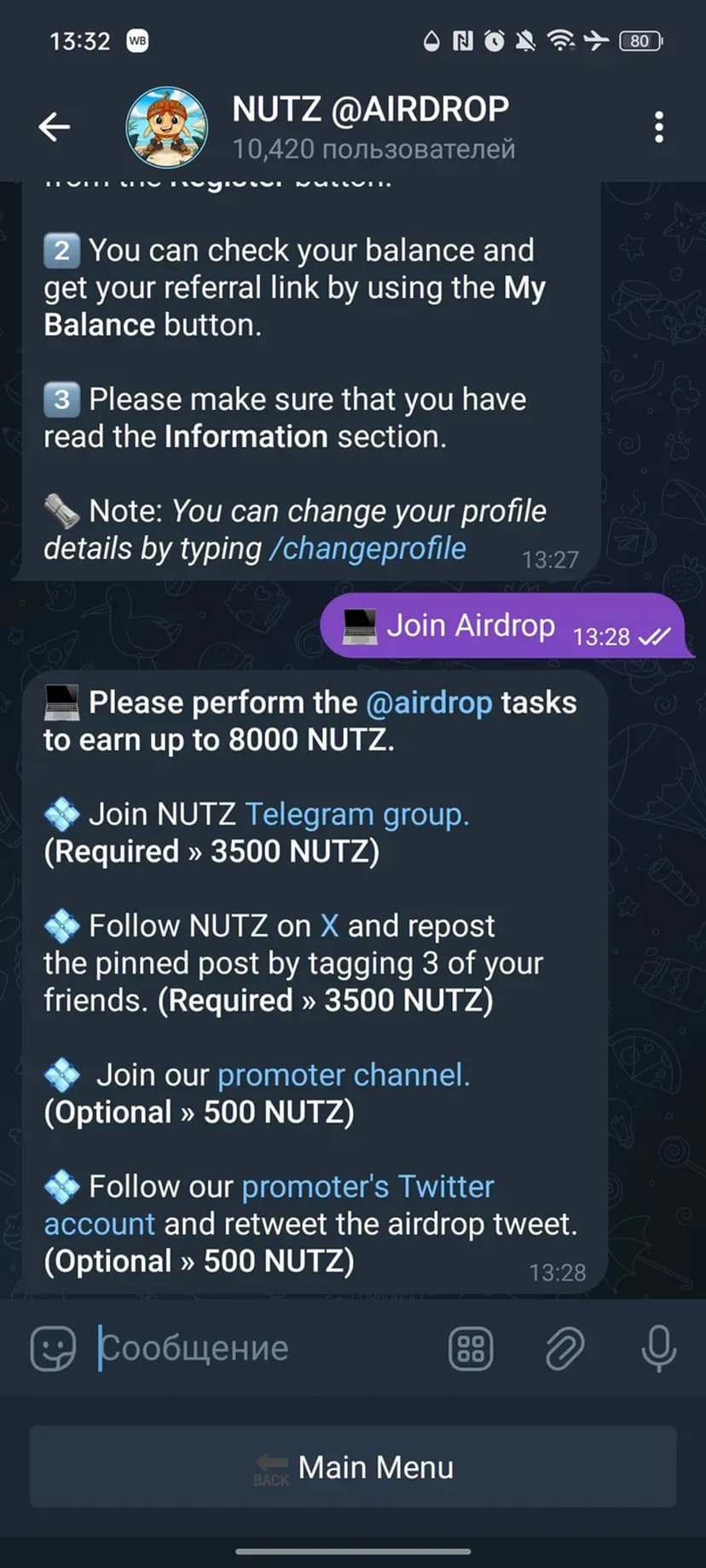 NUTZ AIRDROP автоматизирует проведение airdrop-кампаний в Telegram: сбор заявок, проверка активности участников и учет вознаграждений.
