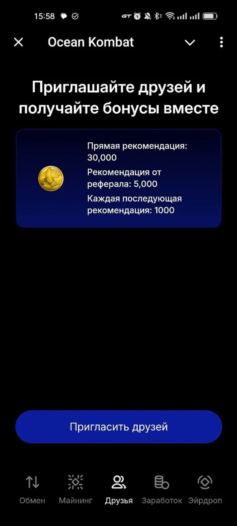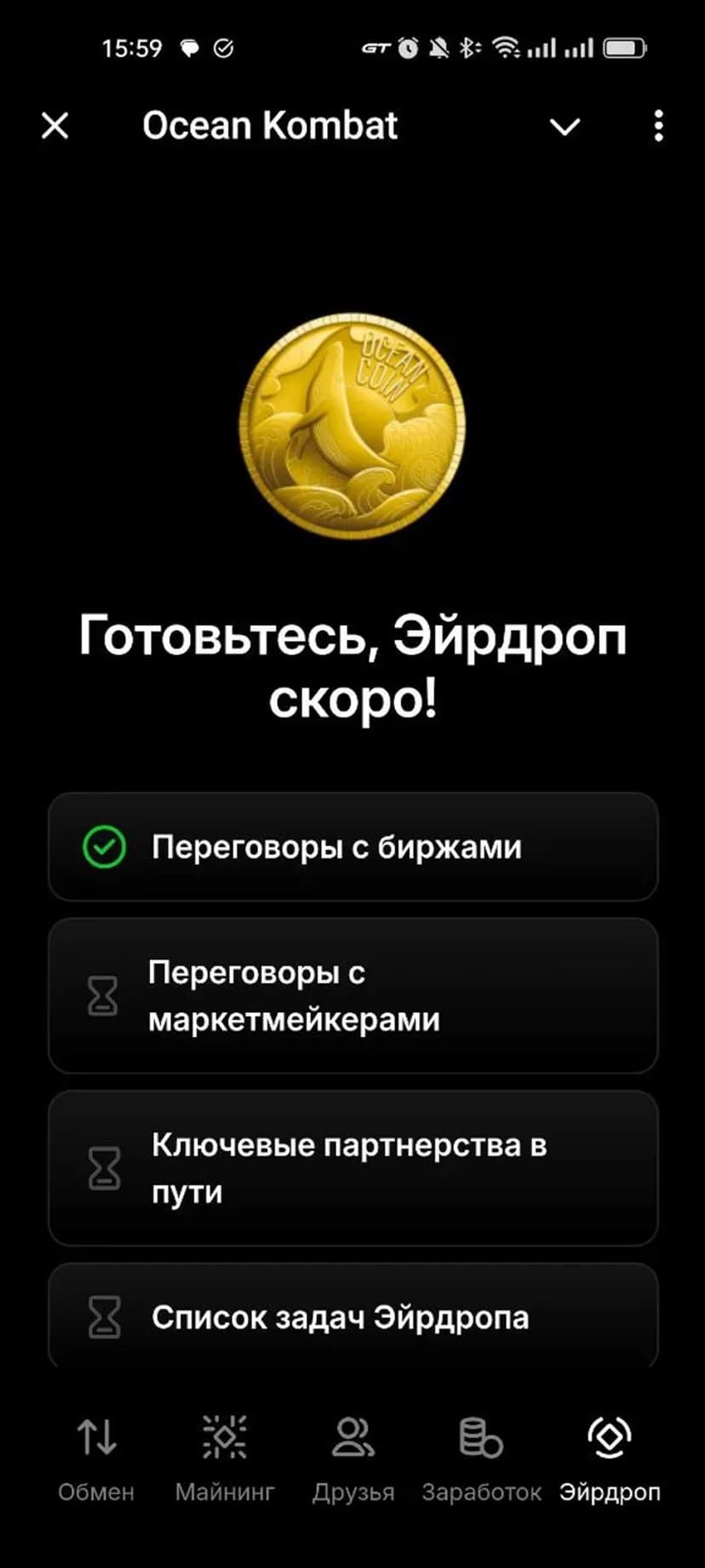 Ocean Kombat — мини‑игра в Telegram, где игроки развивают морского персонажа от креветки до кита, участвуют в приключениях и получают внутриигровую валюту Ocean Coin.