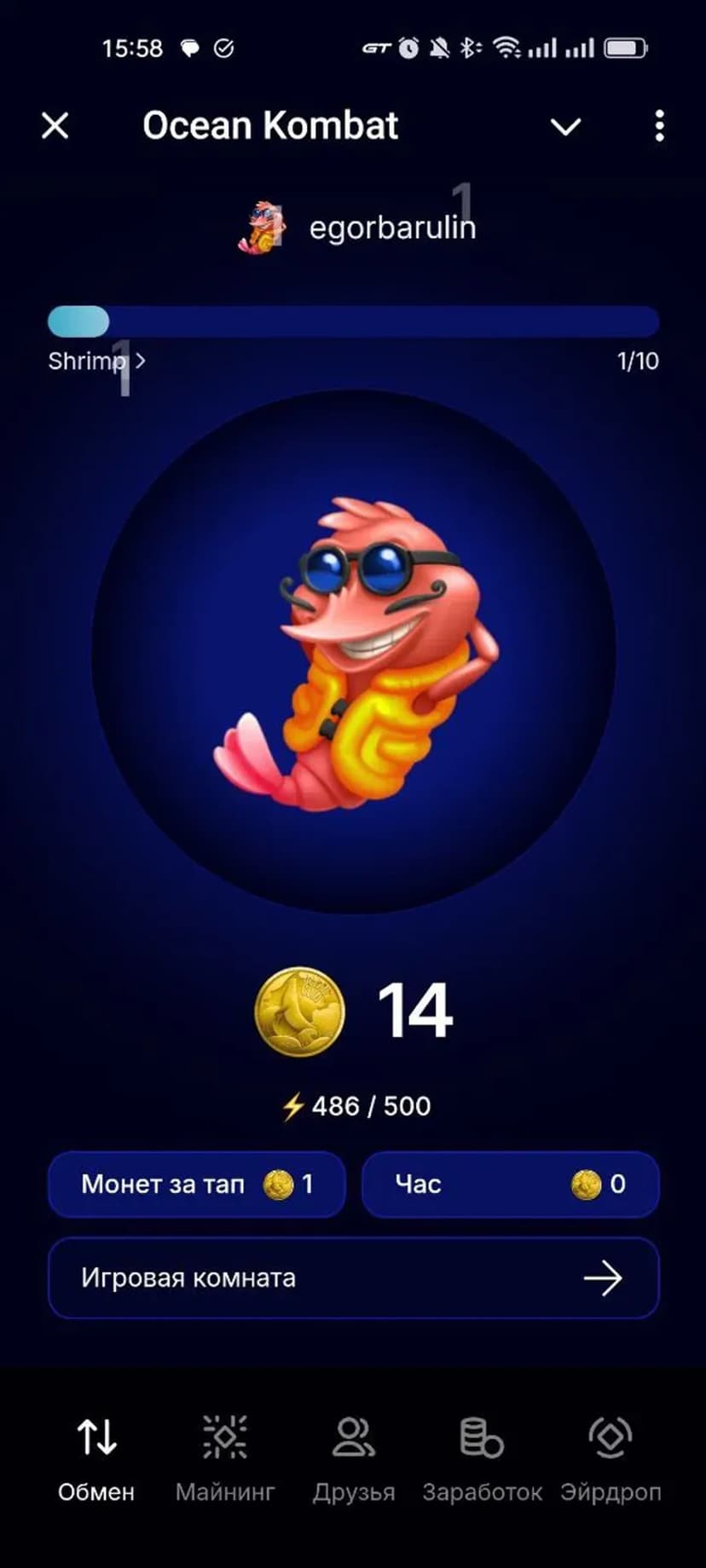 Эволюция от креветки до кита: выполняй миссии, зарабатывай Ocean Coin и Telegram Stars