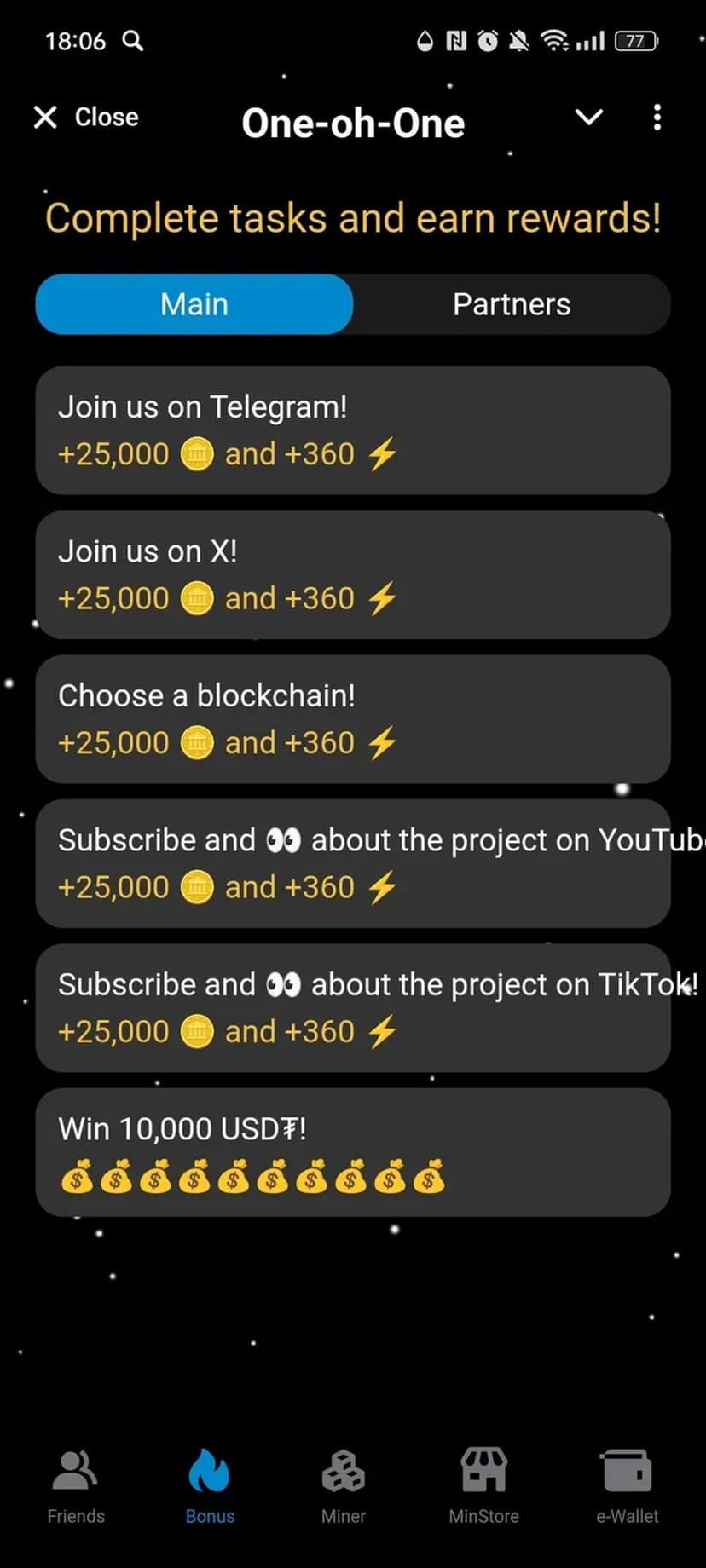 One-oh-One организует честное распределение NFT-майнеров и позволяет добывать криптовалюту внутри мессенджера, делая акцент на входе без первоначальных вложений и простоте использования.