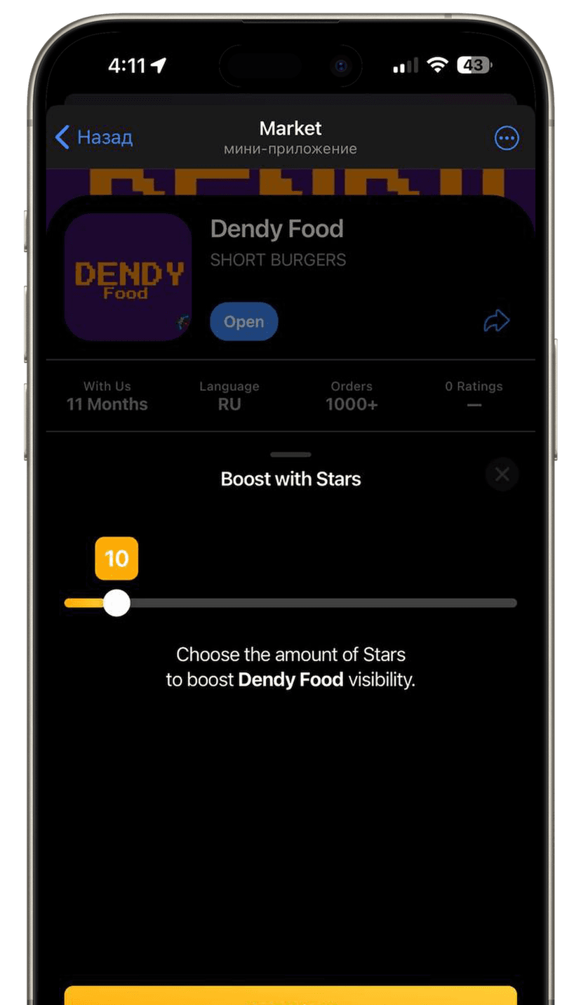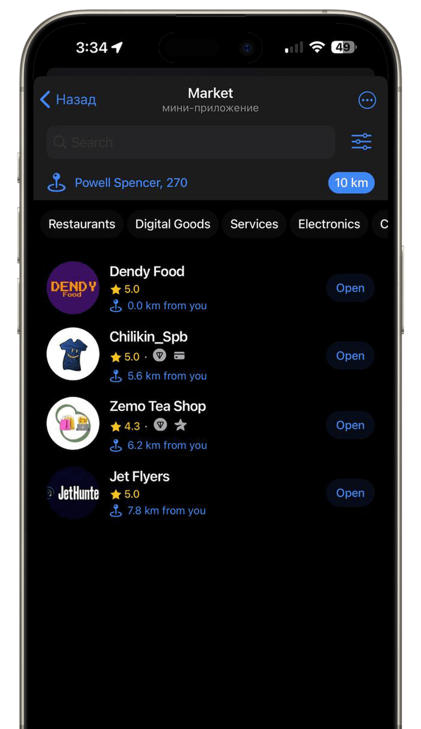 *Нажимая "Открыть в Telegram", вы перейдете к приложению OpenMarketplace в мессенджере Telegram