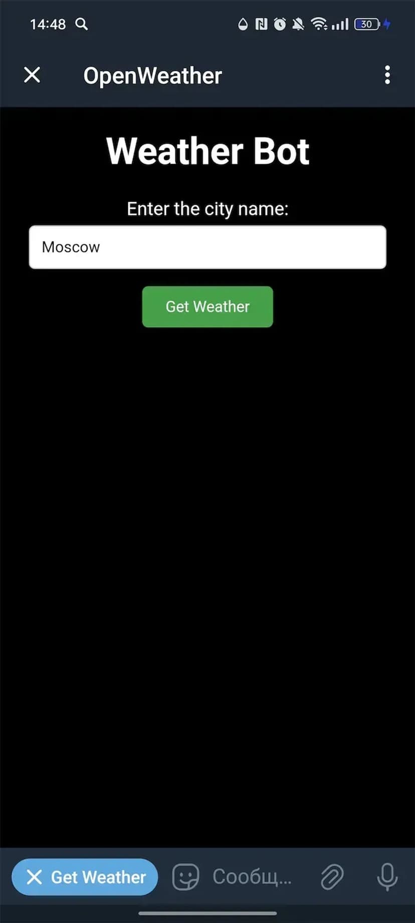 *Нажимая "Открыть в Telegram", вы перейдете к приложению OpenWeather в мессенджере Telegram