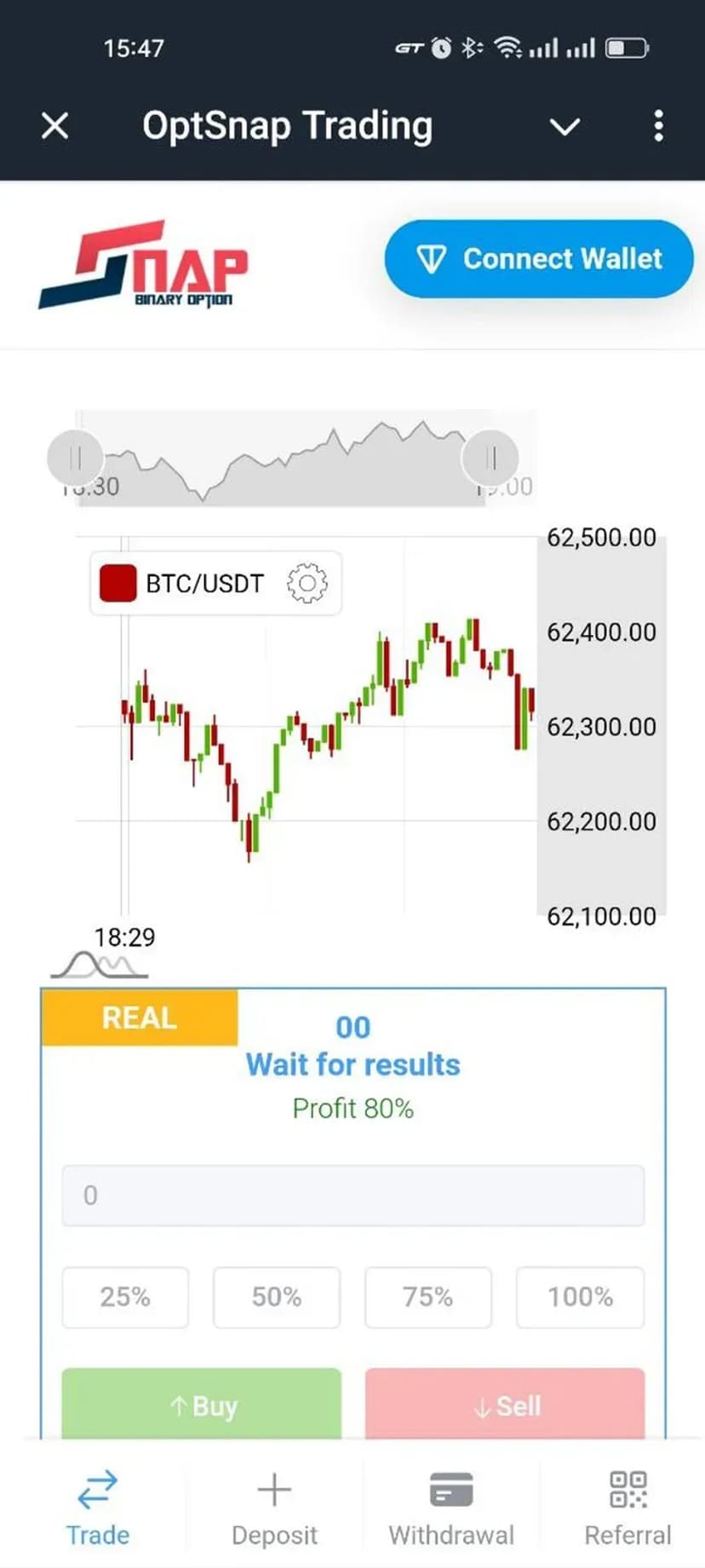 OptSnap Trading — мини‑приложение для оперативной торговли BTC, рассчитанное на быстрые прогнозы движения курса и получение прибыли за счёт рыночной волатильности.