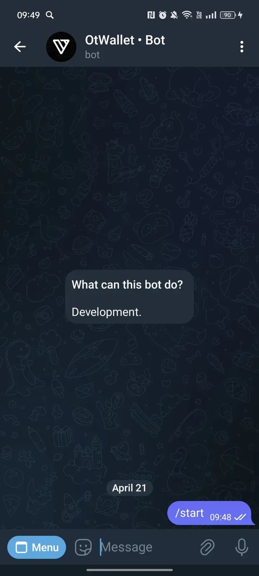 OtWallet • Bot предоставляет удобный web3-кошелёк прямо в Telegram для хранения, обмена и отправки криптовалют. Все операции выполняются внутри бота без перехода на внешние ресурсы.