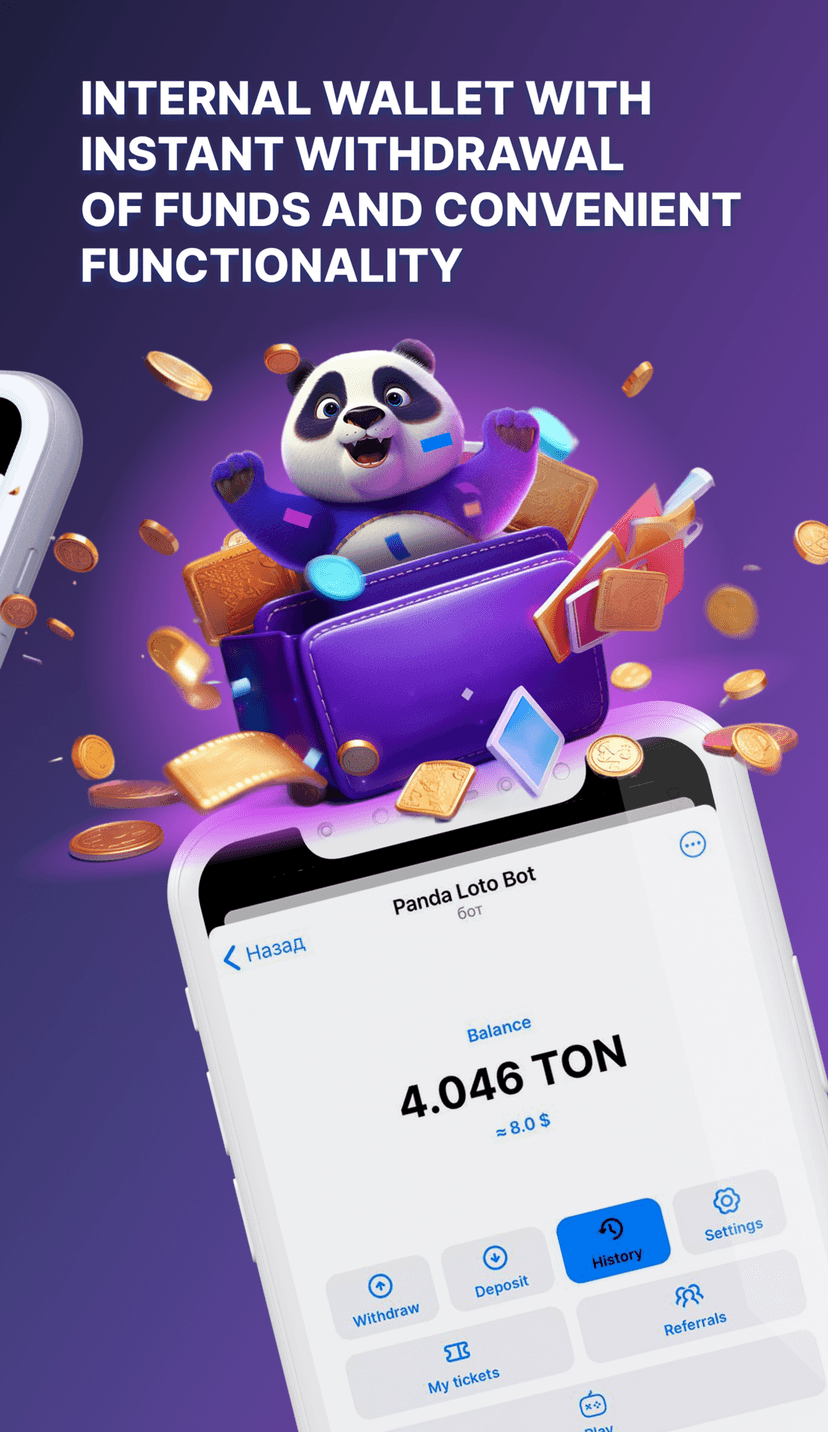 Panda loto — сервис для проведения лотерей и розыгрышей внутри Telegram. Распределение собранных средств осуществляется через блокчейн и смарт‑контракты, благодаря чему до 90% призового фонда автоматически выплачивается победителям, а роль организаторов сводится к минимуму.
