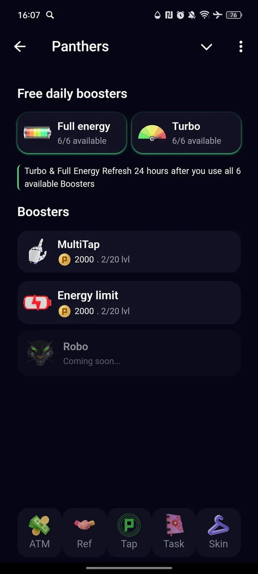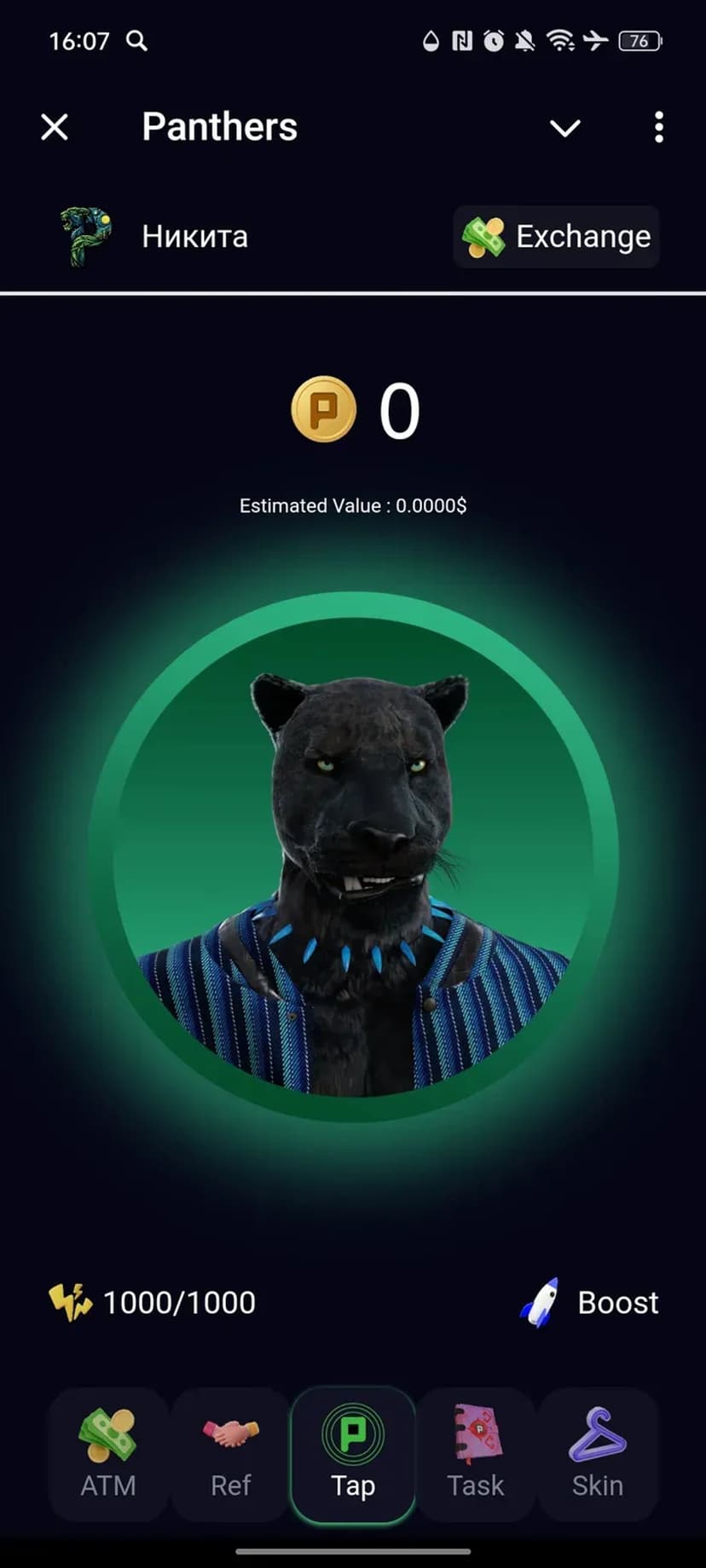 Кликер Panther: кликай по монете, выполняй задания и получай внутриигровые монеты