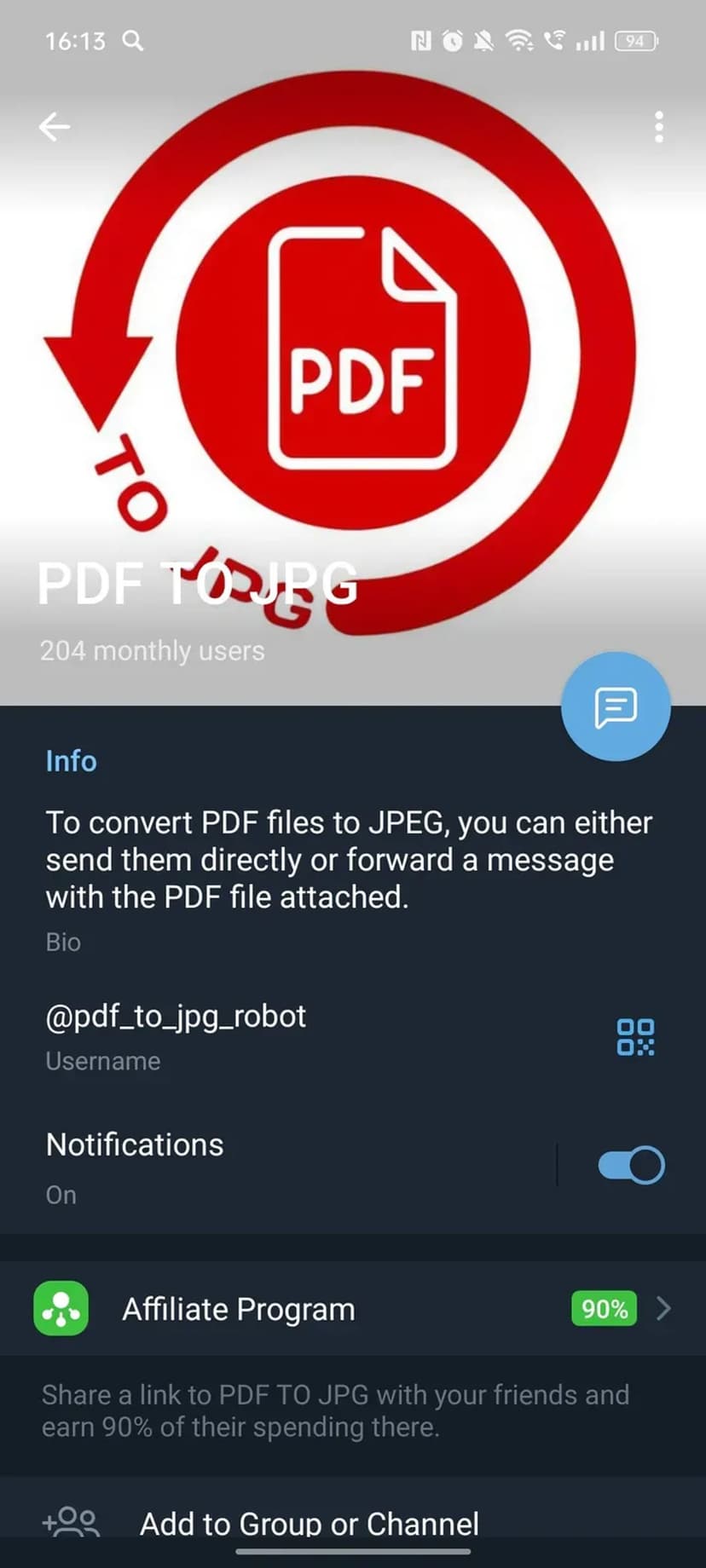 *Нажимая "Открыть в Telegram", вы перейдете к приложению PDF TO JPG ✅ в мессенджере Telegram