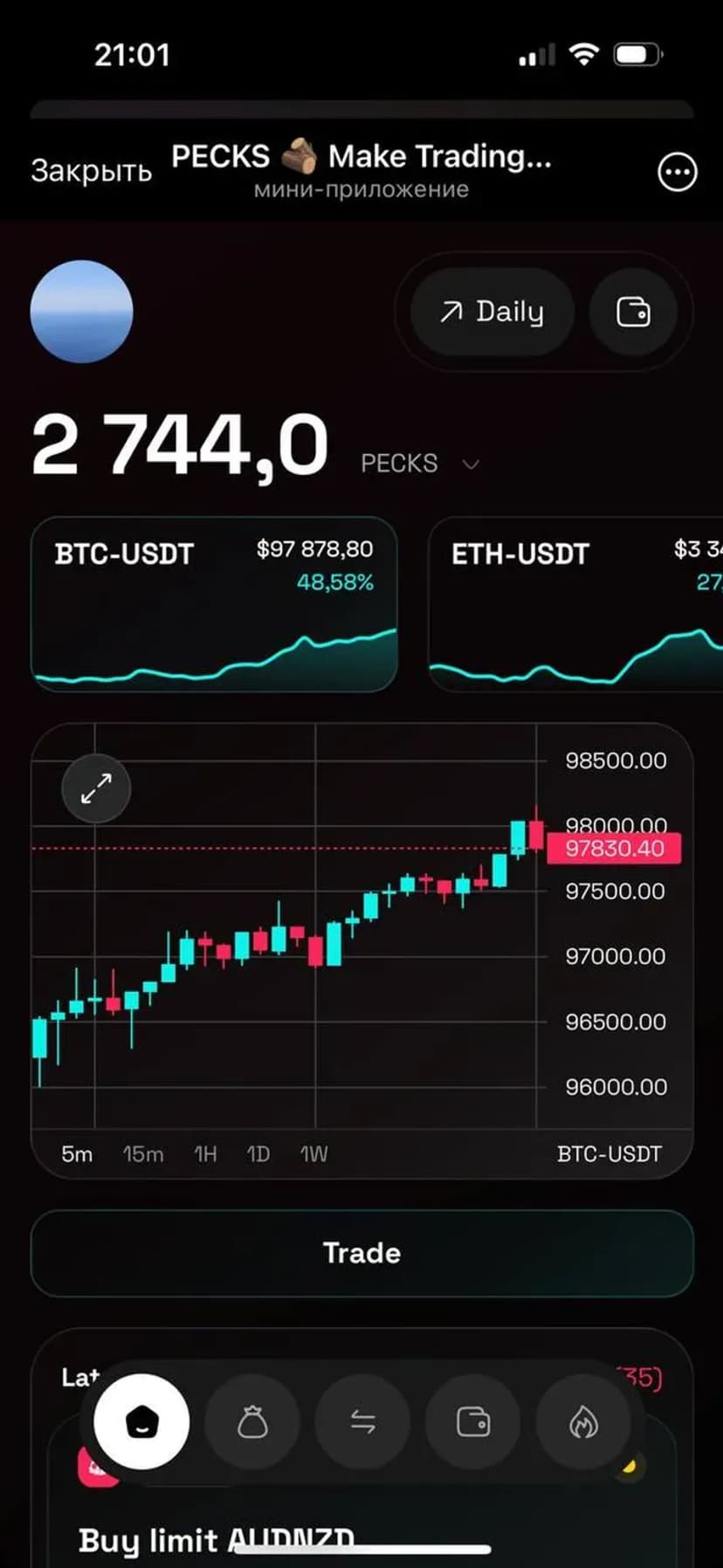 *ΠΠ°ΠΆΠΈΠΌΠ°Ρ "ΠΡΠΊΡΡΡΡ Π² Telegram", Π²Ρ ΠΏΠ΅ΡΠ΅ΠΉΠ΄Π΅ΡΠ΅ ΠΊ ΠΏΡΠΈΠ»ΠΎΠΆΠ΅Π½ΠΈΡ PECKS πͺ΅ Make Trading Easy. Π² ΠΌΠ΅ΡΡΠ΅Π½Π΄ΠΆΠ΅ΡΠ΅ Telegram