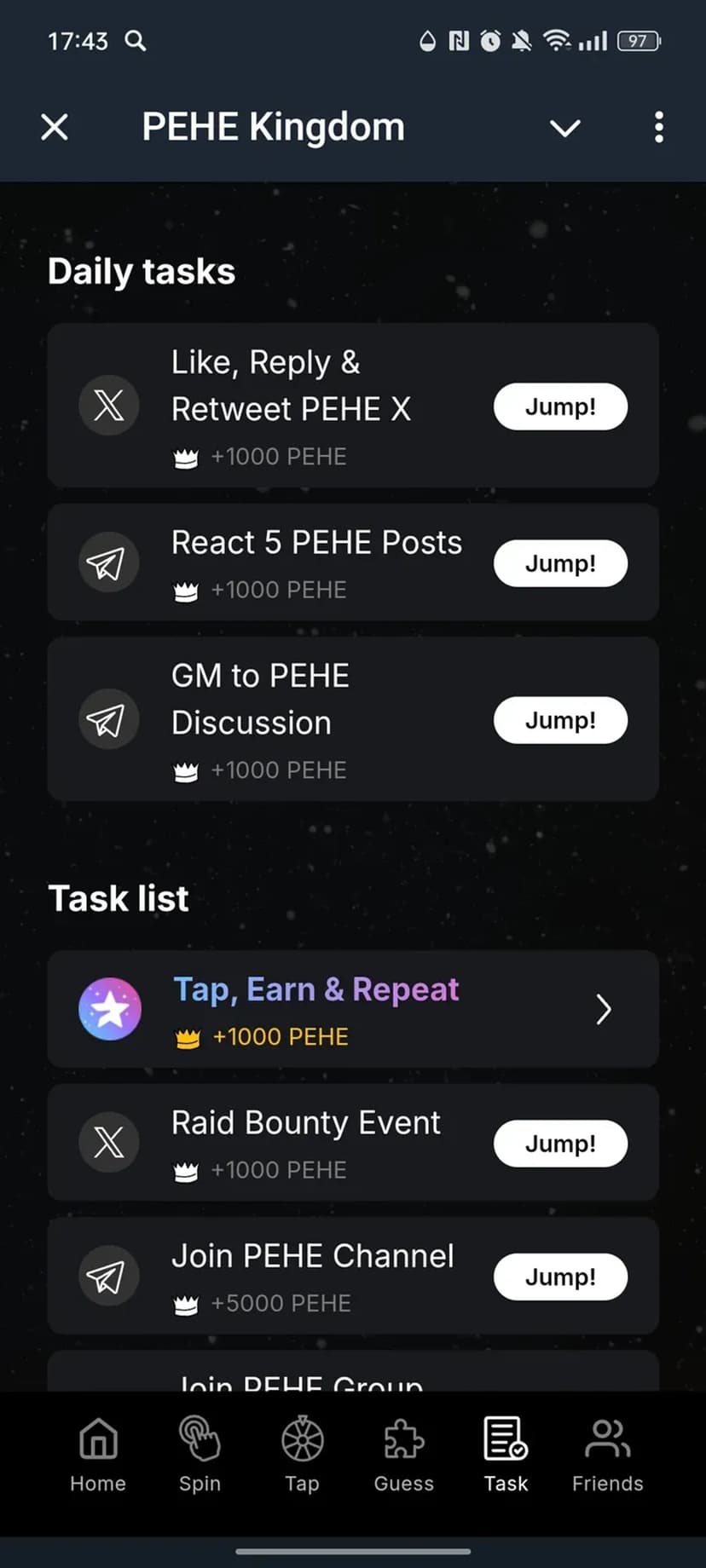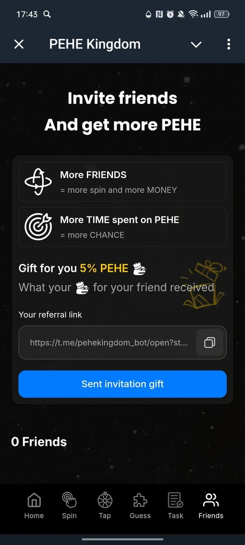 PEHE Kingdom — геймифицированная система рейтингов и вознаграждений внутри Telegram. Пользователи отслеживают личный рейтинг, видят прогресс и получают бонусы за активность.