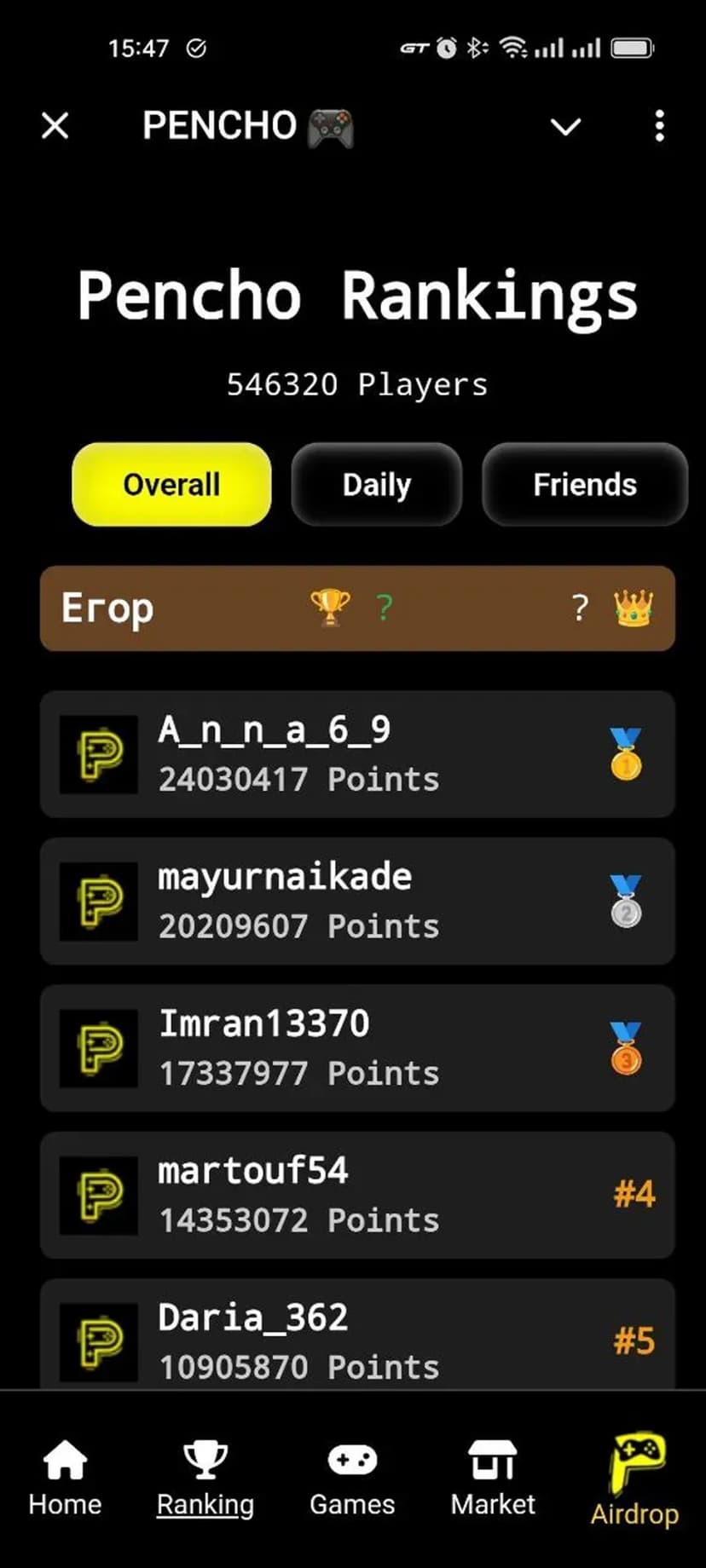 - Выполнение игровых заданий в чате приводит к начислению наград в криптовалюте Pencho.