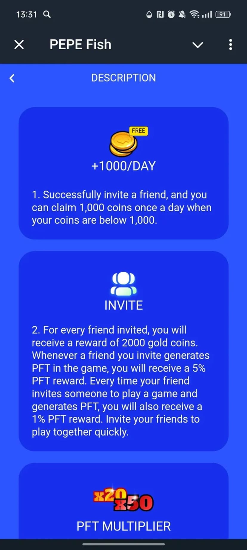 Новое в последнем обновлении: моментальный обмен ресурсов на PEPE, улучшенный интерфейс вывода средств, оптимизированная анимация процесса рыбалки и система ежедневных бонусов за активность.