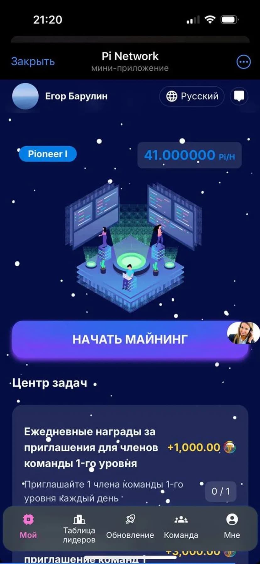 Pi Network — платформа для майнинга криптовалюты Pi, работающая через Telegram-бота. На площадке зарегистрировано более 24 000 пользователей в месяц; процесс автоматизирован и проходит прямо в чате.