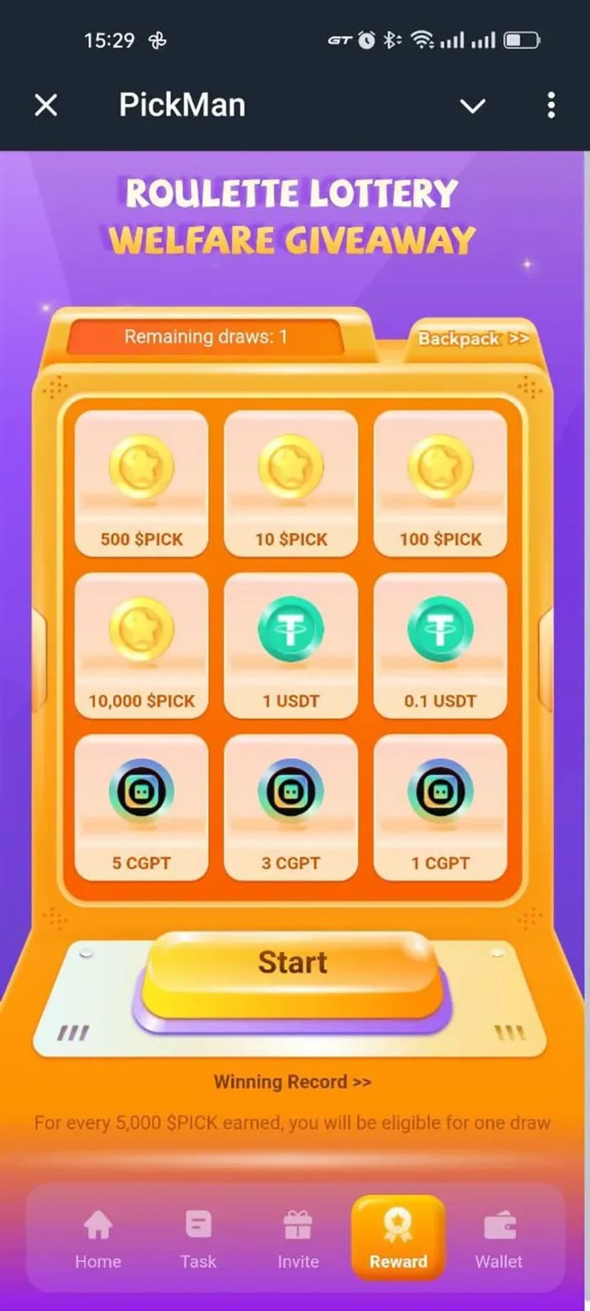 - Награды: сбор монет, сундуков и прочих бонусов, начисление $PICK.
