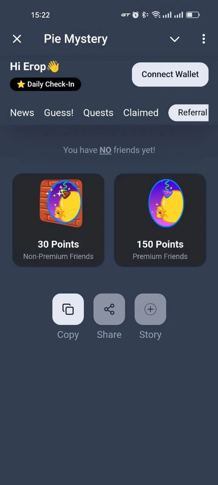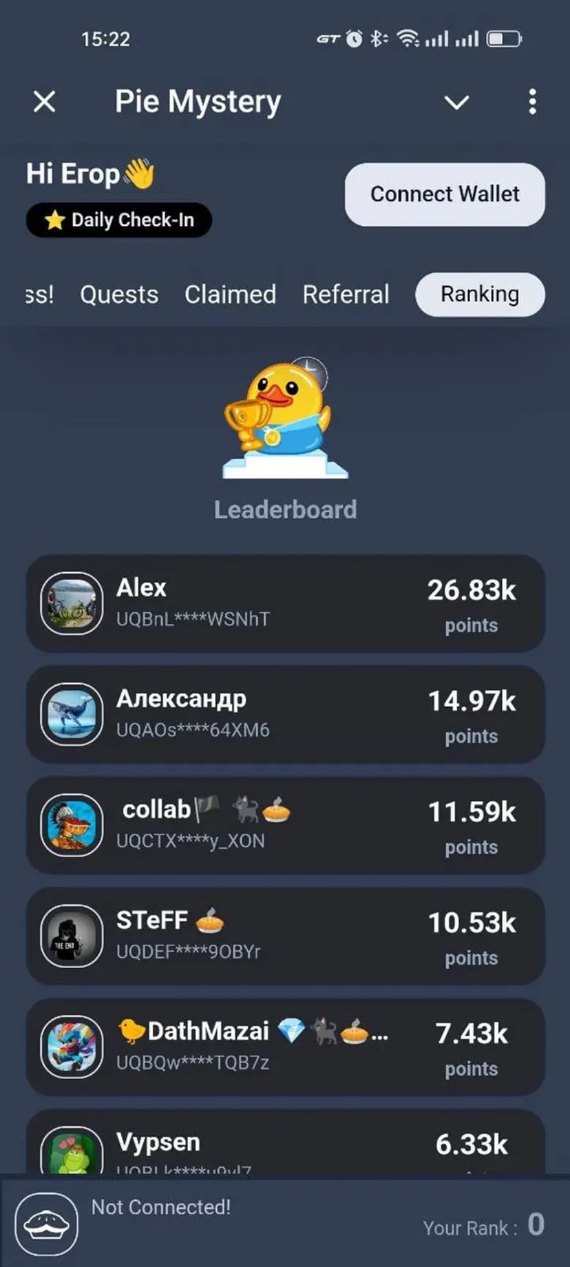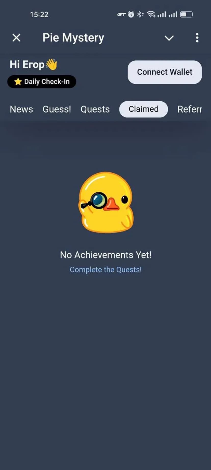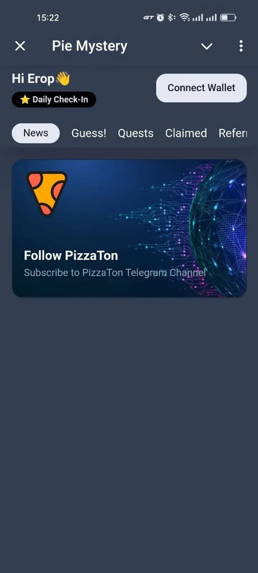 Pie Mystery — интерактивная мини-игра, в которой игроки пытаются разгадать суть будущего проекта Pie до его официального запуска. Участие влияет на получение реальных бонусов и позицию в общем рейтинге.