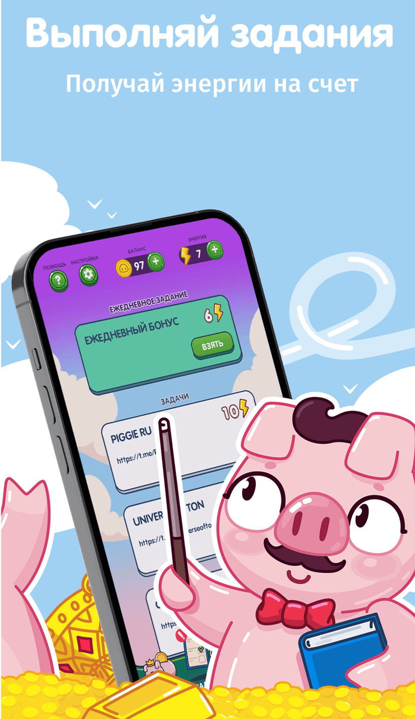 *Нажимая "Открыть в Telegram", вы перейдете к приложению Piggie Game в мессенджере Telegram