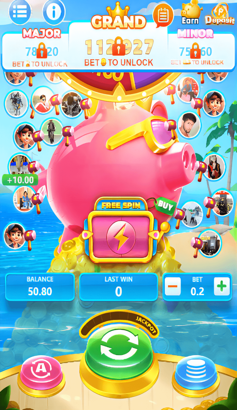 - Разбивание копилок — каждое нажатие приносит монеты и даёт шанс на бонусы.