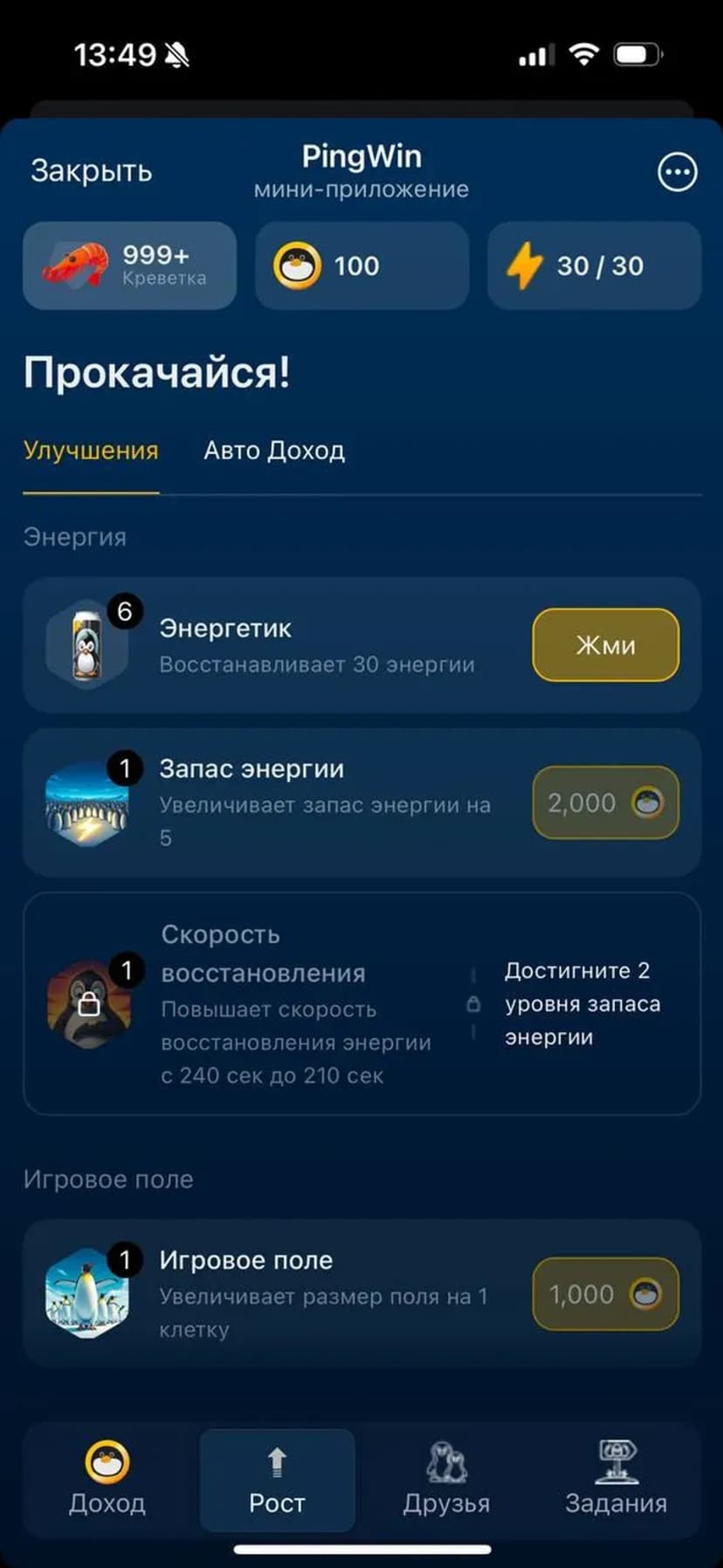 - Энергия выступает ограничивающим ресурсом для ходов