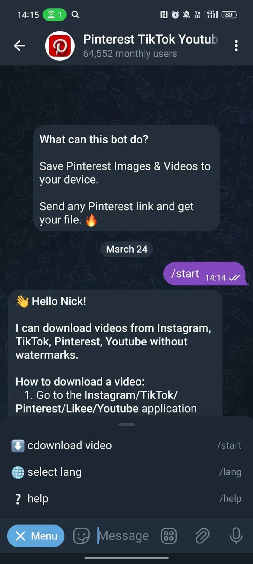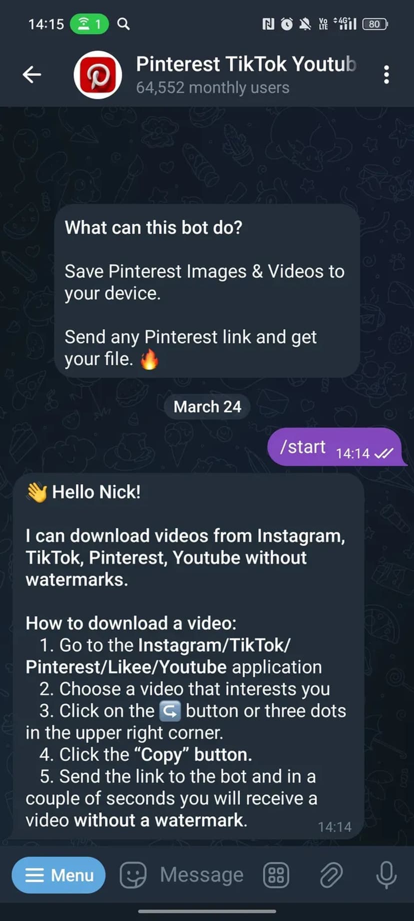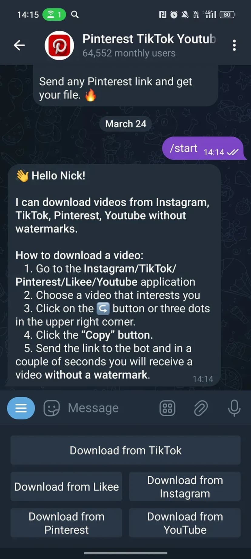 Скачивайте видео из TikTok, Instagram, YouTube, Pinterest и Likee без водяных знаков в чат