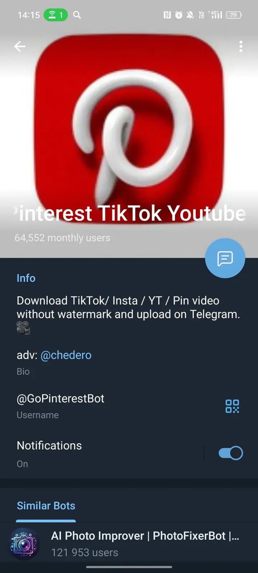 *Нажимая "Открыть в Telegram", вы перейдете к приложению Pinterest TikTok Youtube downloader в мессенджере Telegram