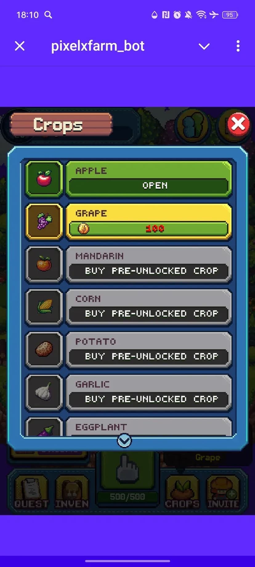 *Нажимая "Открыть в Telegram", вы перейдете к приложению pixelxfarm_bot в мессенджере Telegram