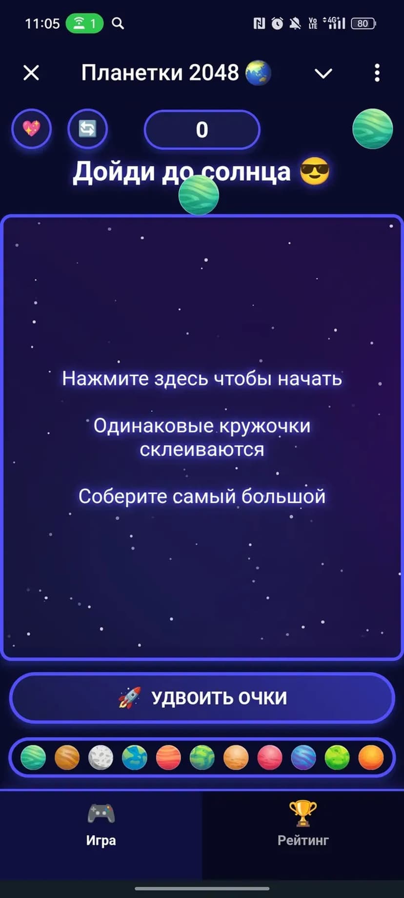 *Нажимая "Открыть в Telegram", вы перейдете к приложению Планетки 2048 в мессенджере Telegram