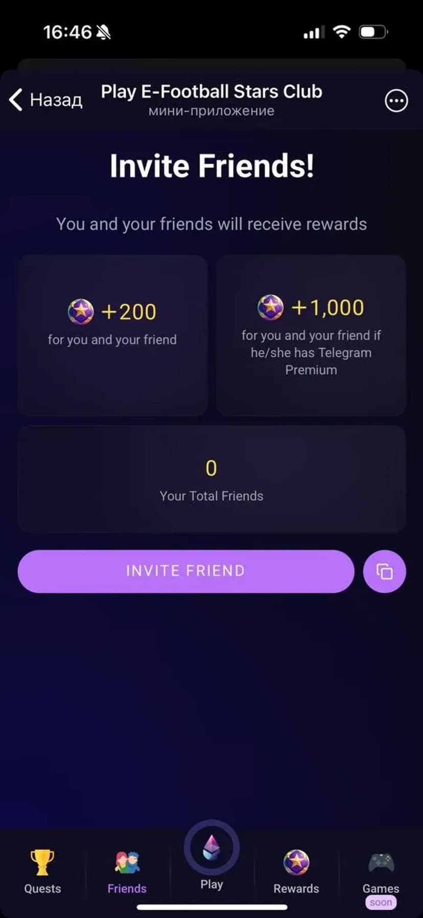 *Нажимая "Открыть в Telegram", вы перейдете к приложению Play E-Football Stars Club в мессенджере Telegram