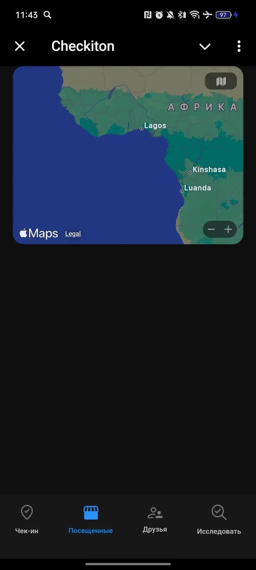 Интерфейс интегрирован с картой — выбирайте интересующие локации и отмечайтесь при визите. Для быстрого доступа применяется вход через Telegram‑профиль.