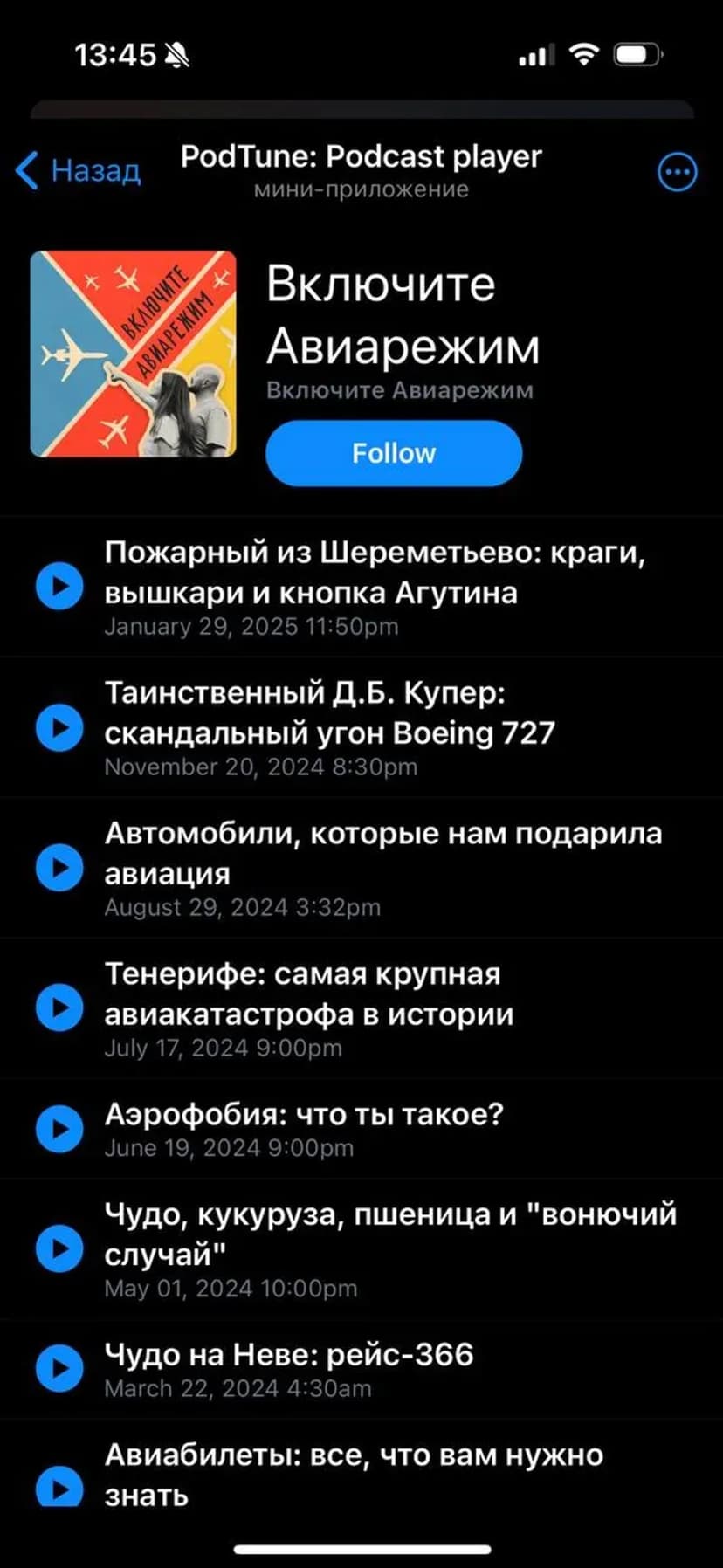 *Нажимая "Открыть в Telegram", вы перейдете к приложению PodTune: Podcast Player в мессенджере Telegram