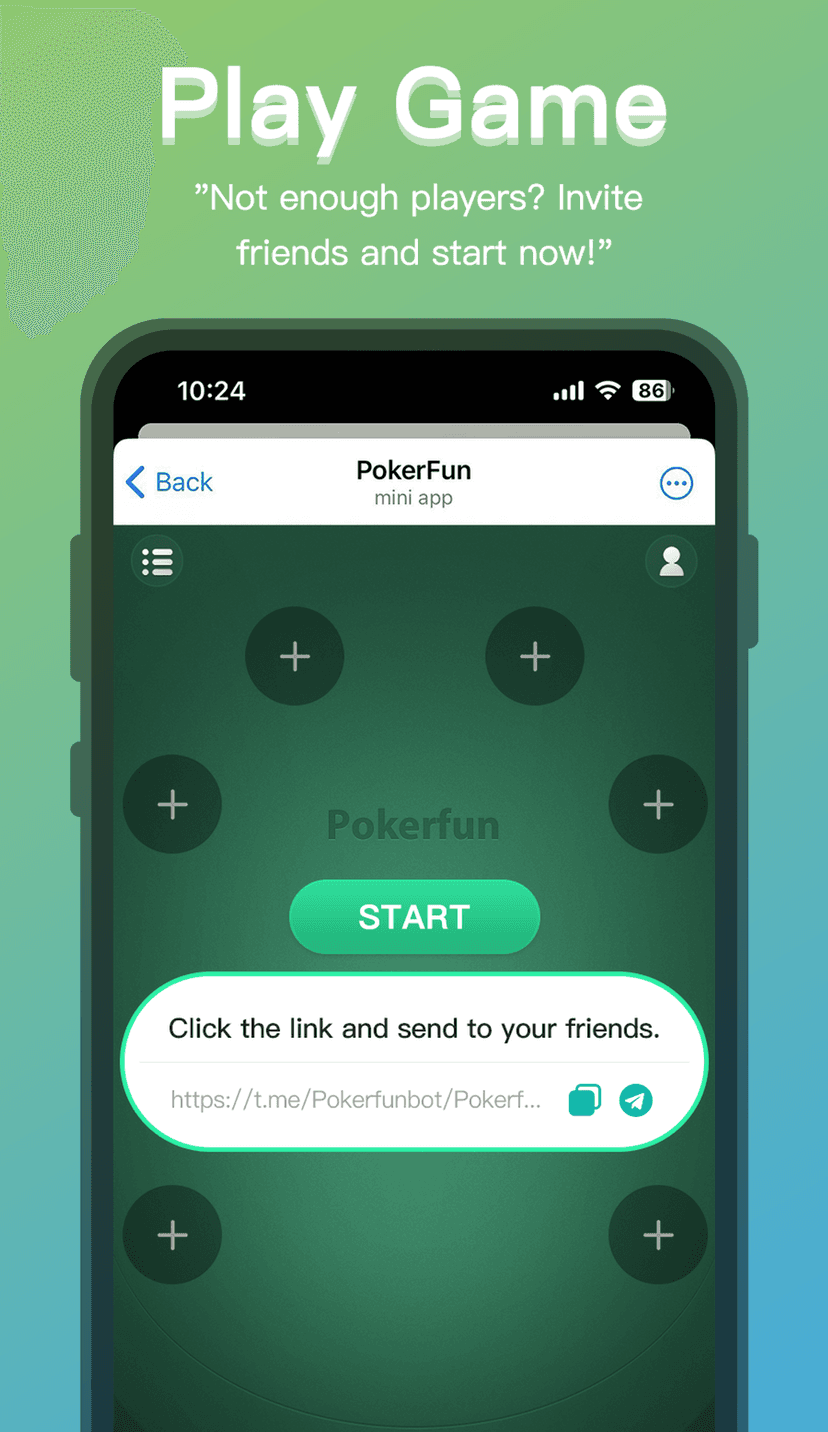 Играйте в популярные карточные игры — Texas Hold'em, Yummy и Truco — прямо в чатах Telegram без регистрации. Создавайте приватные комнаты и приглашайте друзей по ссылке для мгновенного старта партии.