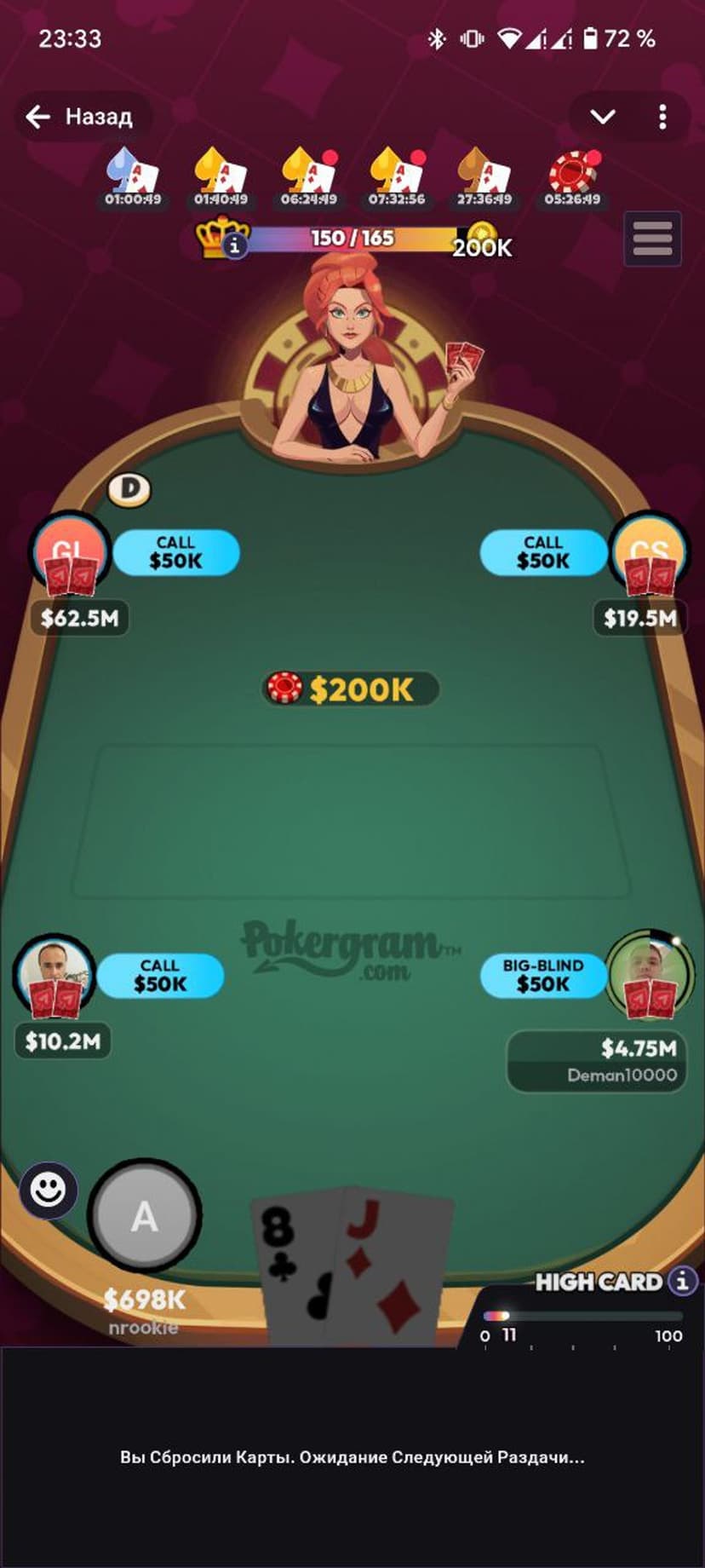 - Геймплей — партии по классическим покерным правилам с адаптацией под мобильные экраны; интуитивная навигация и понятные ставки.