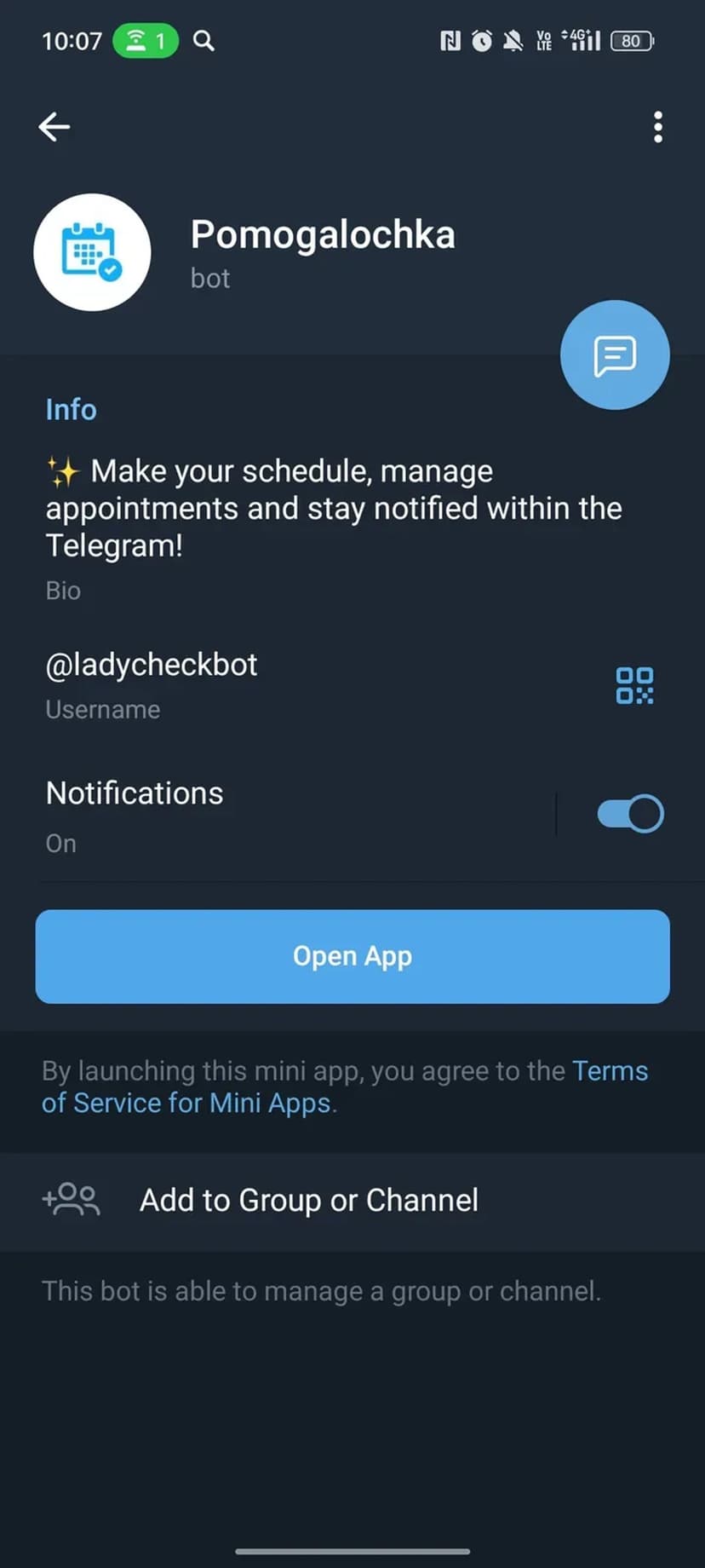 *Нажимая "Открыть в Telegram", вы перейдете к приложению Pomogalochka в мессенджере Telegram